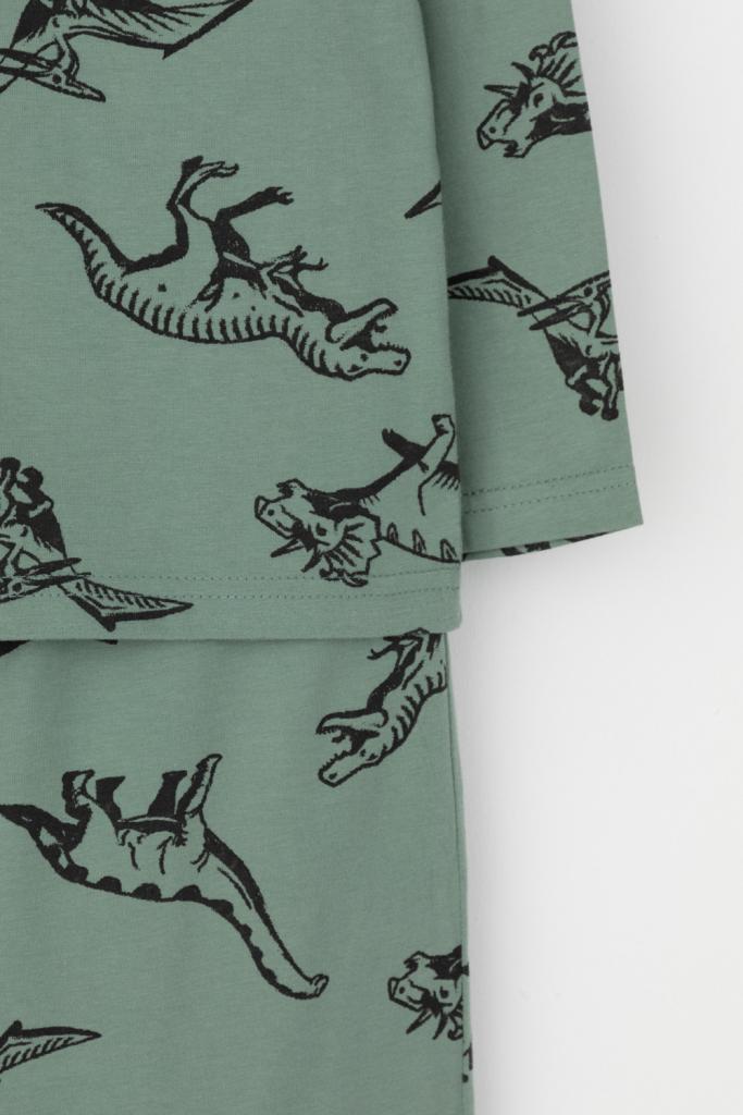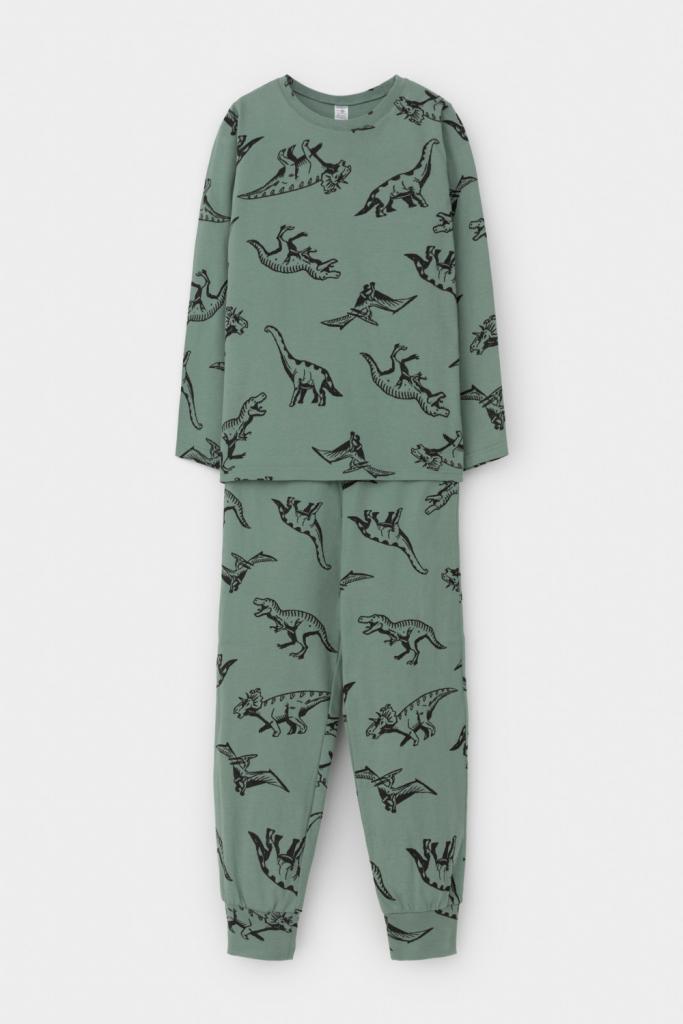 Трикотажная пижама из натурального хлопка. Джемпер с длинными втачными рукавами и брюки с эластичной резинкой в поясе. Мягкие манжеты по низу брюк. Оригинальная набивка выполнена из стойких гипоаллергенных текстильных гипоаллергенных красителей. Изделие сохраняет цвет и форму после многократных стирок. Все трикотажные полотна производятся в соответсвии с нормами швейцарского сертификата ЭкоТекс.