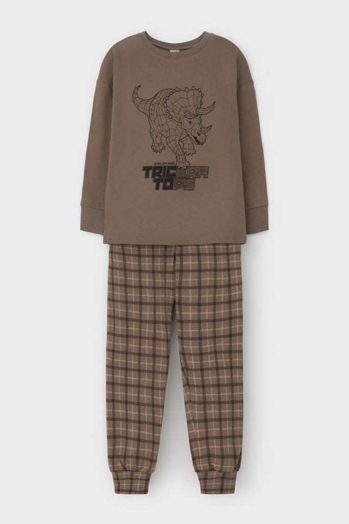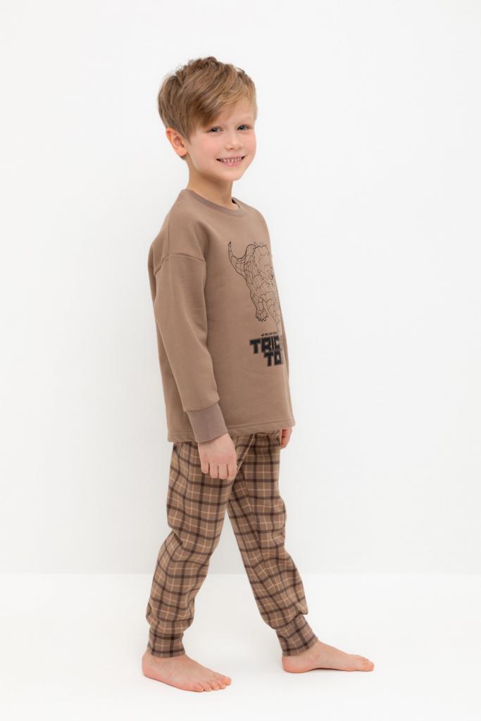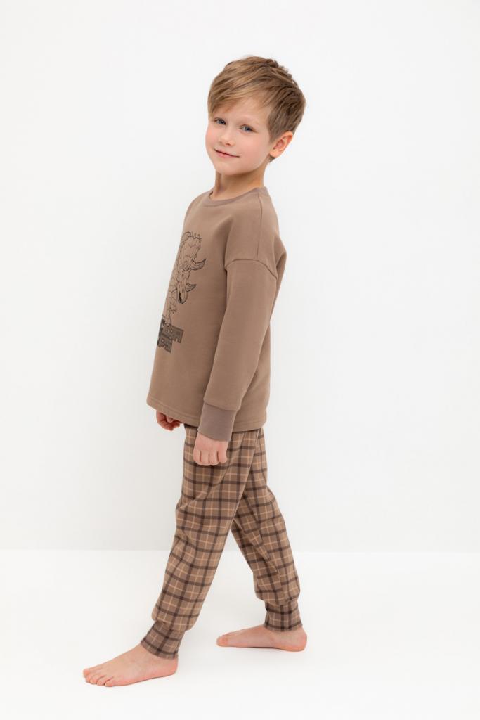 Трикотажная пижама с начёсом из натурального хлопка. Джемпер с длинными спущенными рукавами и брюки с эластичной резинкой в поясе. Мягкие манжеты на рукавах и по низу брюк. Оригинальные набивка и принт выполнены из стойких гипоаллергенных текстильных гипоаллергенных красителей. Изделие сохраняет цвет и форму после многократных стирок. Все трикотажные полотна производятся в соответсвии с нормами швейцарского сертификата ЭкоТекс.