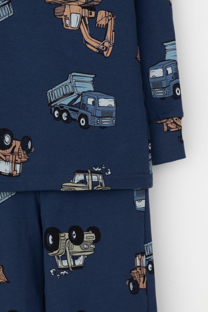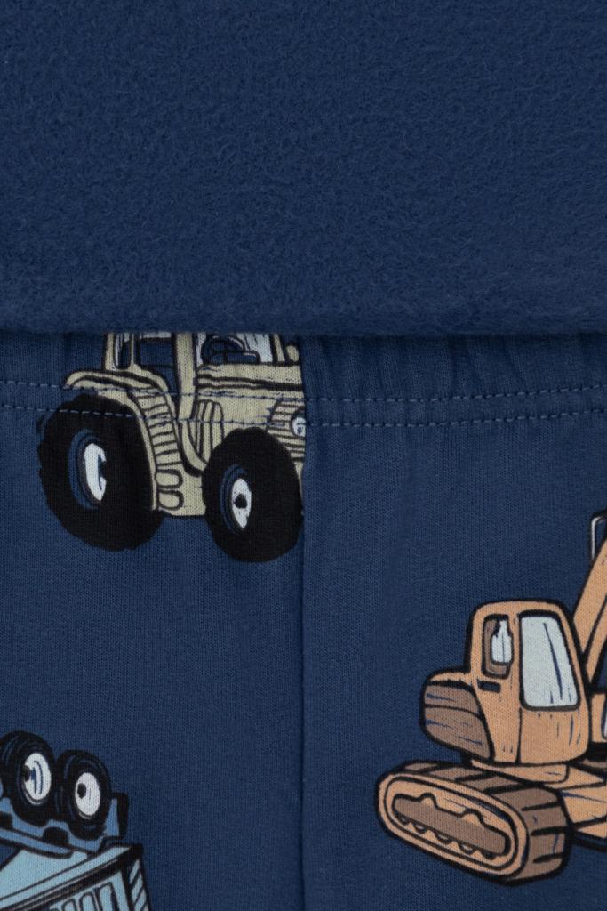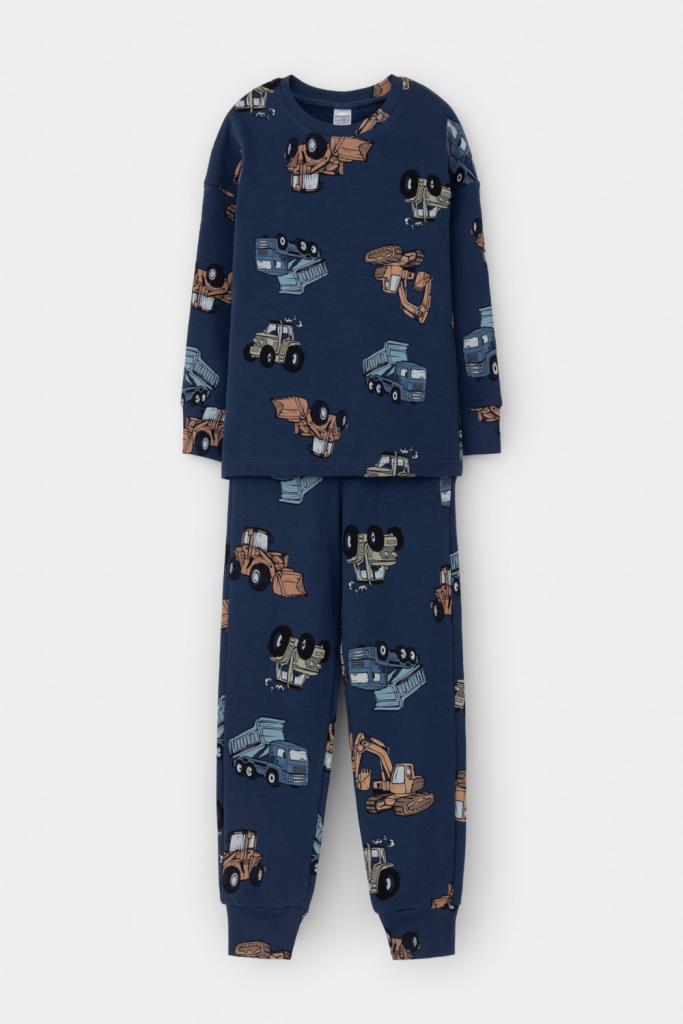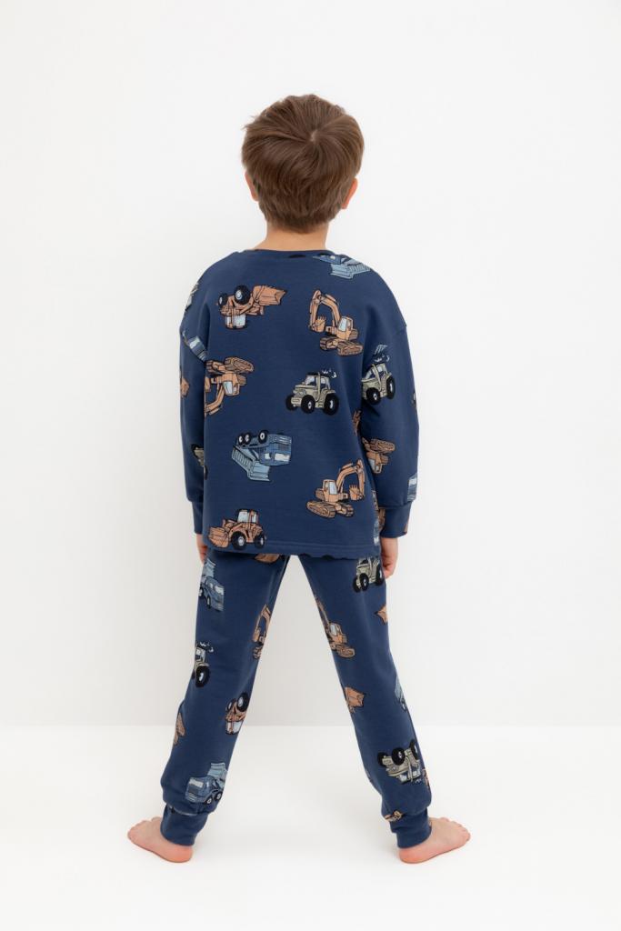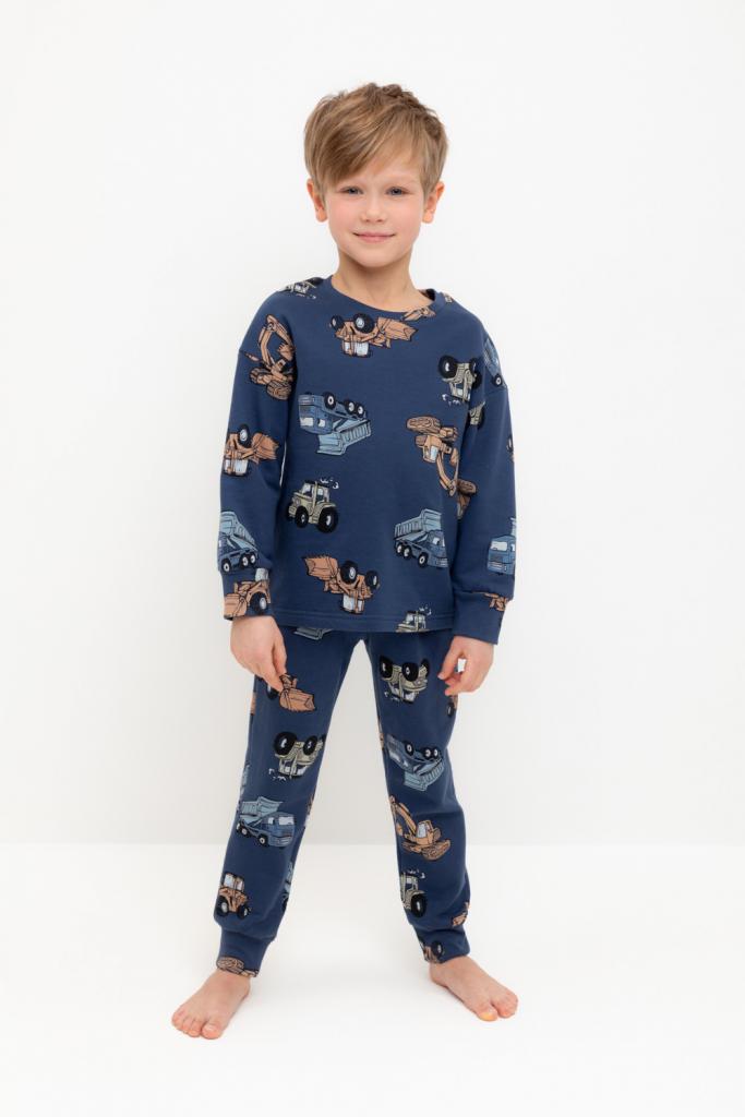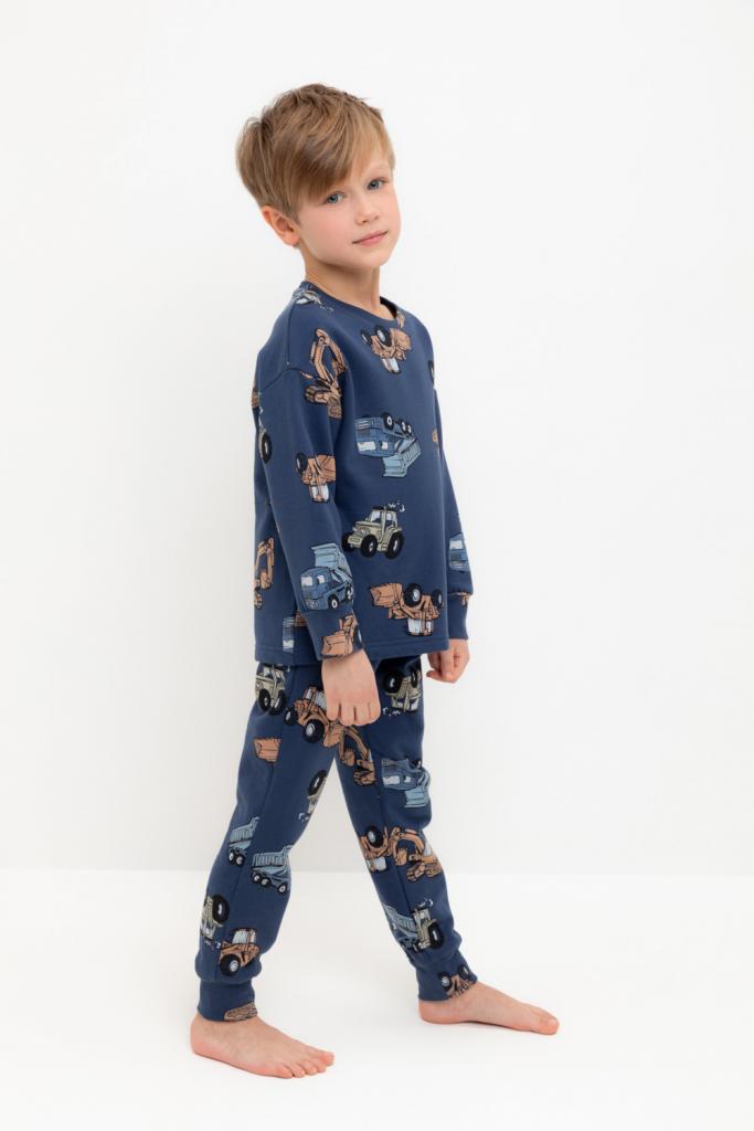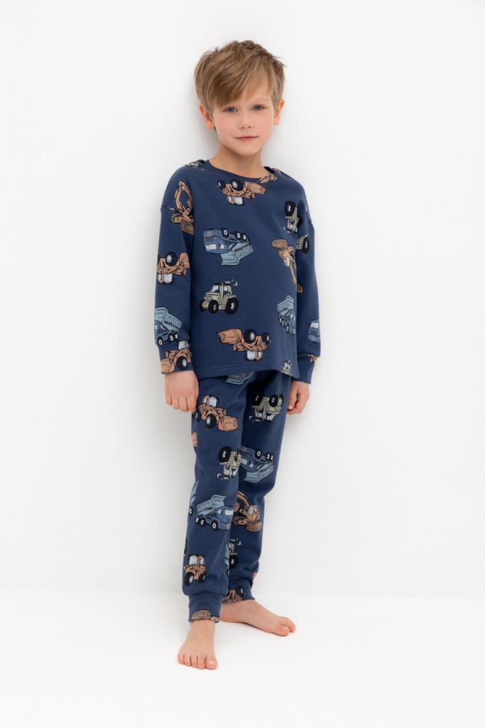 Трикотажная пижама с начёсом из натурального хлопка. Джемпер с длинными спущенными рукавами и брюки с эластичной резинкой в поясе. Мягкие манжеты на рукавах и по низу брюк. Оригинальная набивка выполнена из стойких гипоаллергенных текстильных красителей. Изделие сохраняет цвет и форму после многократных стирок. Все трикотажные полотна производятся в соответсвии с нормами швейцарского сертификата ЭкоТекс.