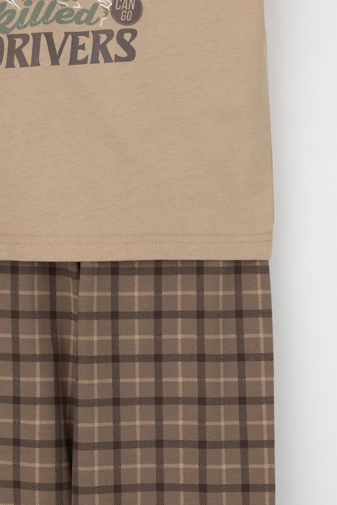 Трикотажная пижама из натурального хлопка. Футболка с короткими втачными рукавами и прямые брюки с эластичной резинкой в поясе. Оригинальные набивка и принт выполнены из стойких гипоаллергенных текстильных гипоаллергенных красителей. Изделие сохраняет цвет и форму после многократных стирок. Все трикотажные полотна производятся в соответсвии с нормами швейцарского сертификата ЭкоТекс.