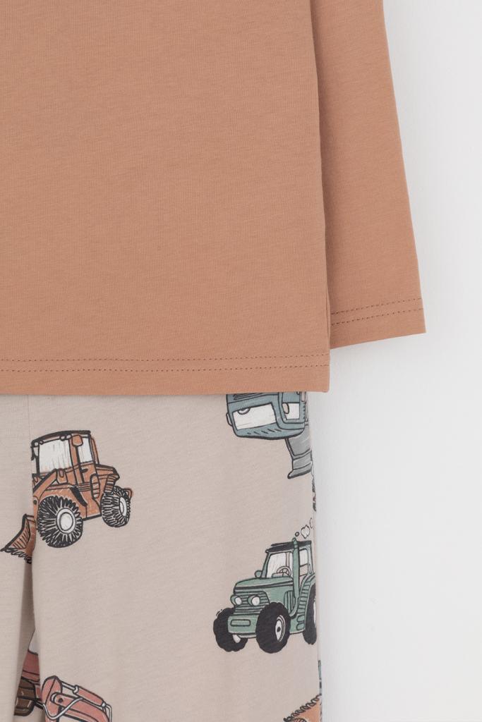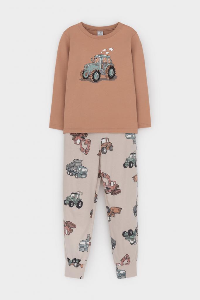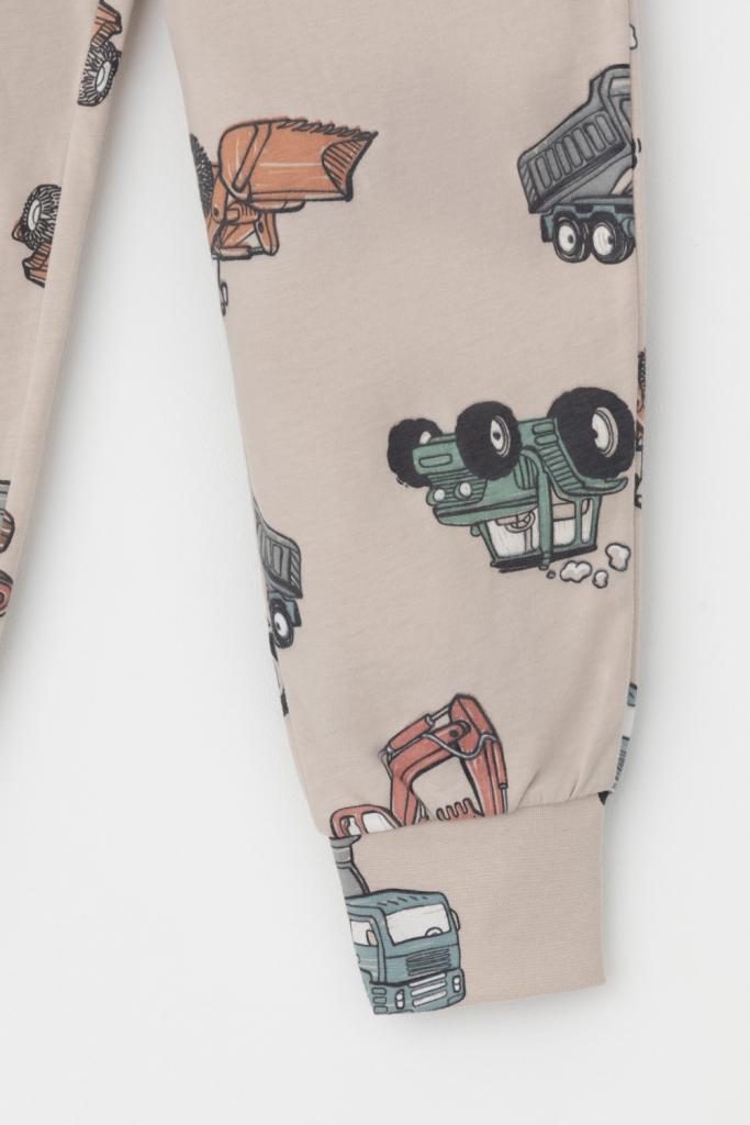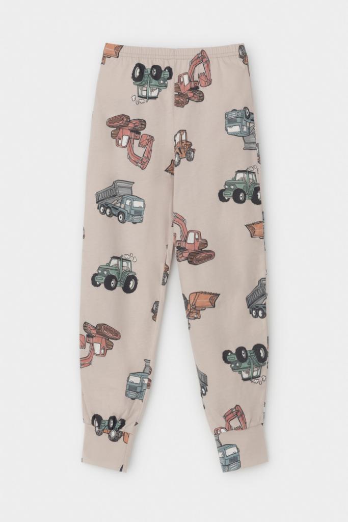 Трикотажная пижама из натурального хлопка. Джемпер с длинными втачными рукавами и брюки с эластичной резинкой в поясе. Мягкие манжеты по низу брюк. Оригинальные набивка и принт выполнены из стойких гипоаллергенных текстильных гипоаллергенных красителей. Изделие сохраняет цвет и форму после многократных стирок. Все трикотажные полотна производятся в соответсвии с нормами швейцарского сертификата ЭкоТекс.