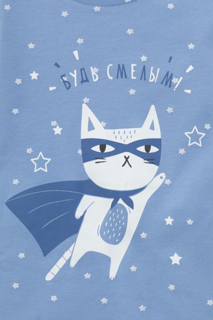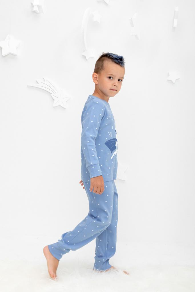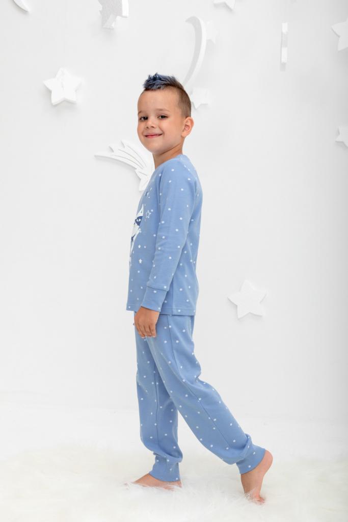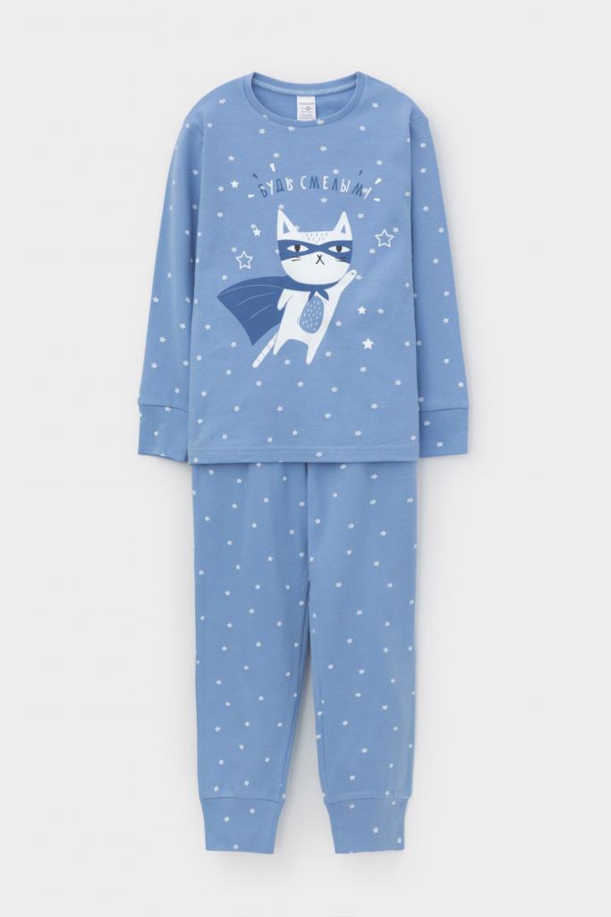 Трикотажная пижама из натурального хлопка. Джемпер с длинными рукавами с эластичными манжетами. У брюк эластичный пояс на резинке. Оригинальная набивка выполнена из стойких, гипоаллергенных текстильных красителей. Пижама сохраняет цвет и форму после многократных стирок. Все трикотажные полотна производятся в соответствии с нормами Швейцарского сертификата ЭкоТекс.