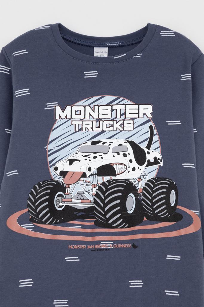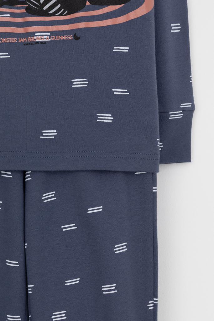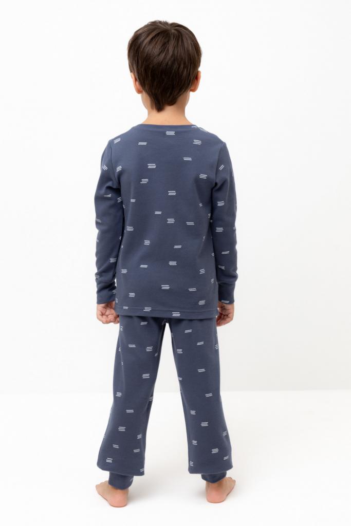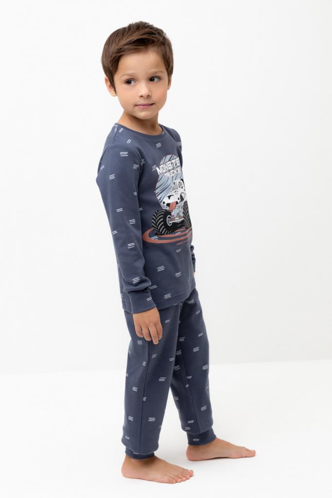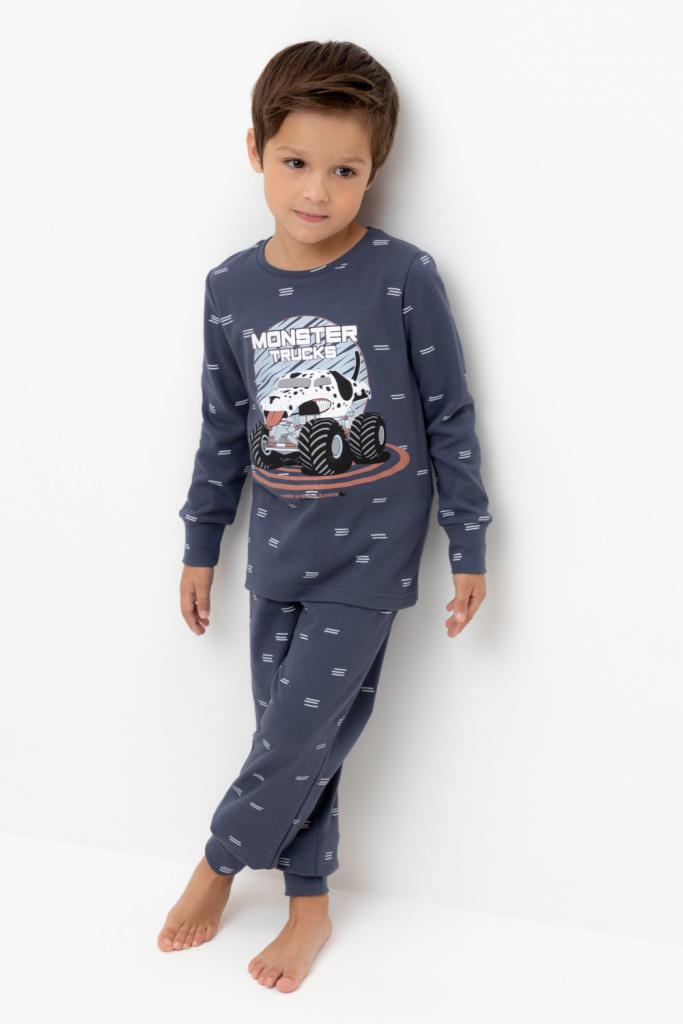 Трикотажная пижама из натурального хлопка. Джемпер с длинными втачными рукавами и брюки с эластичной резинкой в поясе. Мягкие манжеты на рукавах и по низу брюк. Оригинальная набивка и принт выполнены из стойких текстильных красителей. Изделие сохраняет цвет и форму после многократных стирок. Все трикотажные полотна производятся в соответсвии с нормами швейцарского сертификата ЭкоТекс.