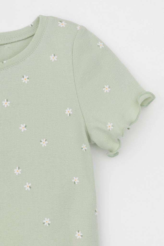 Трикотажная пижама в рубчик из натурального хлопка. Футболка с короткими втачными рукавами и шорты с эластичной резинкой в поясе. Оригинальная набивка выполнена из стойких текстильных гипоаллергенных красителей. Изделие сохраняет цвет и форму после многократных стирок. Все трикотажные полотна производятся в соответсвии с нормами швейцарского сертификата ЭкоТекс.