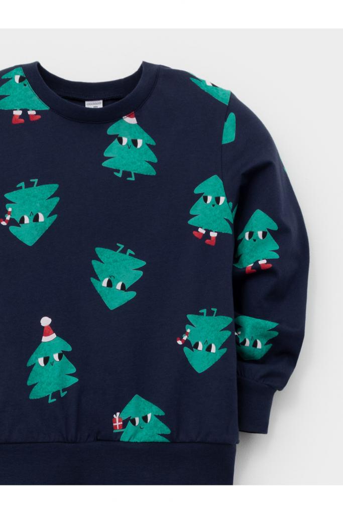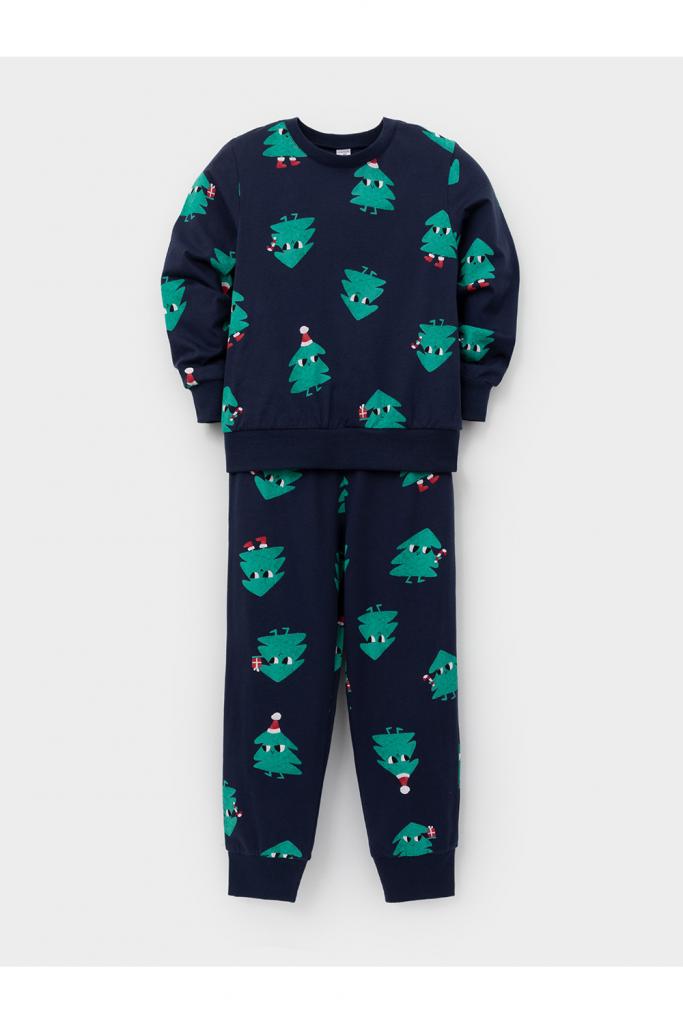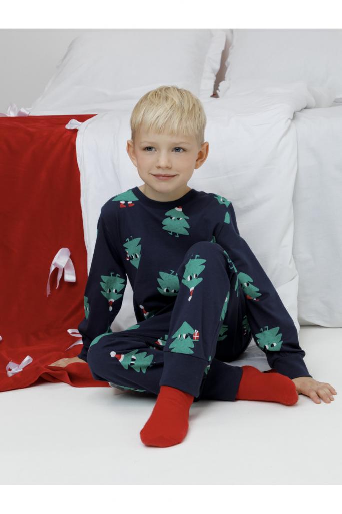 Новогодняя пижама из натурального хлопка. Джемпер с длинными втачными рукавами и брюки с эластичной резинкой в поясе. Мягкие манжеты на рукавах и по низу брюк. Пижама отлично подойдёт для создания уютных домашних образов или в качестве подарка на Новый год и Рождество. Оригинальная набивка выполнена из стойких текстильных гипоаллергенных красителей. Изделие сохраняет цвет и форму после многократных стирок. Все трикотажные полотна производятся в соответствии с нормами швейцарского сертификата ЭкоТекс.