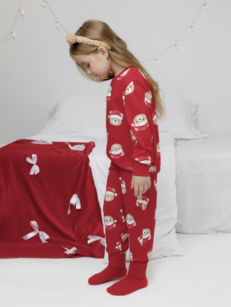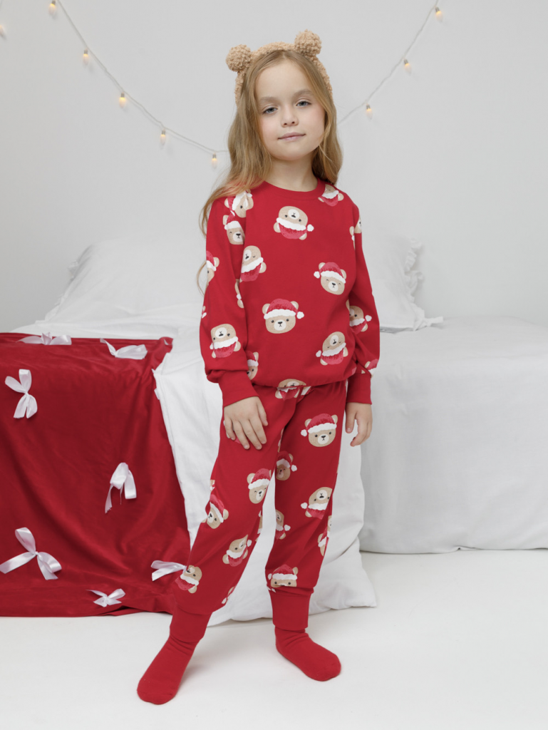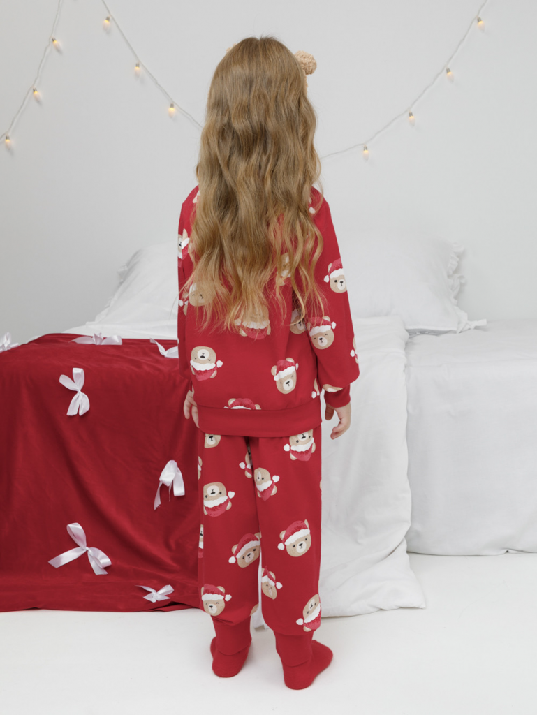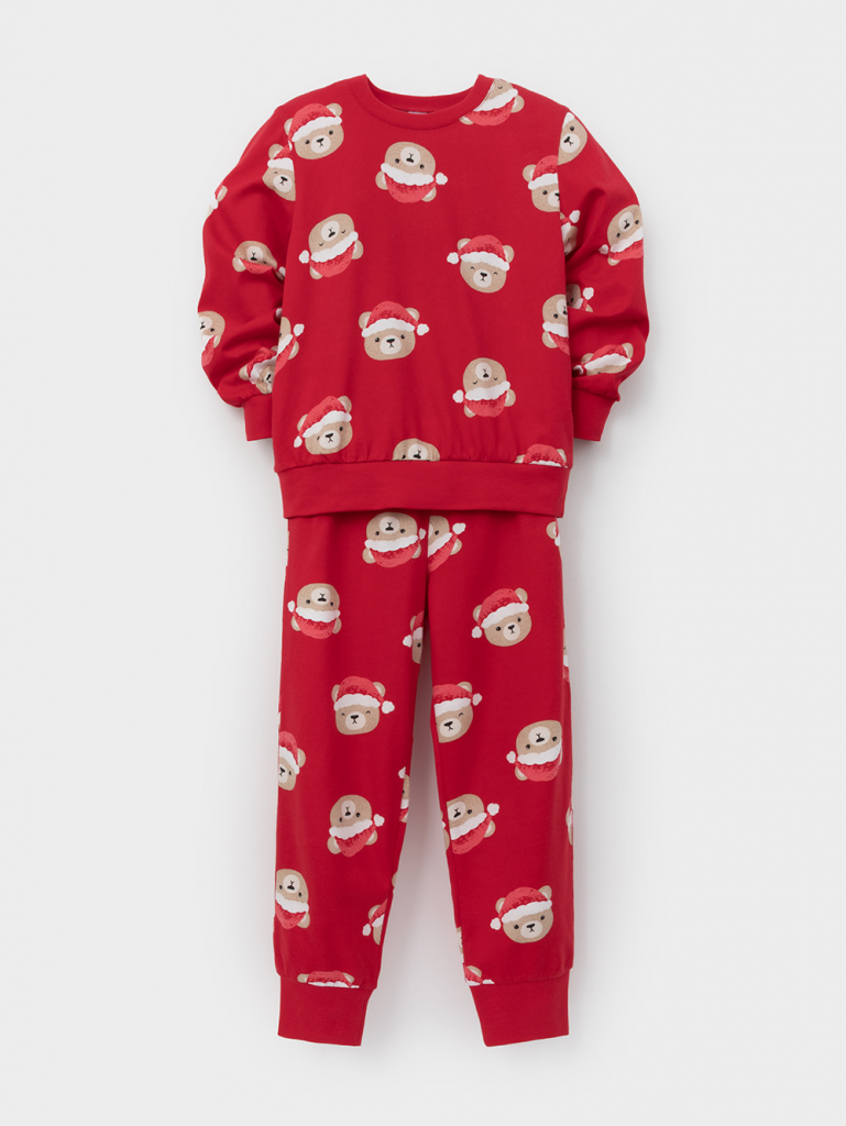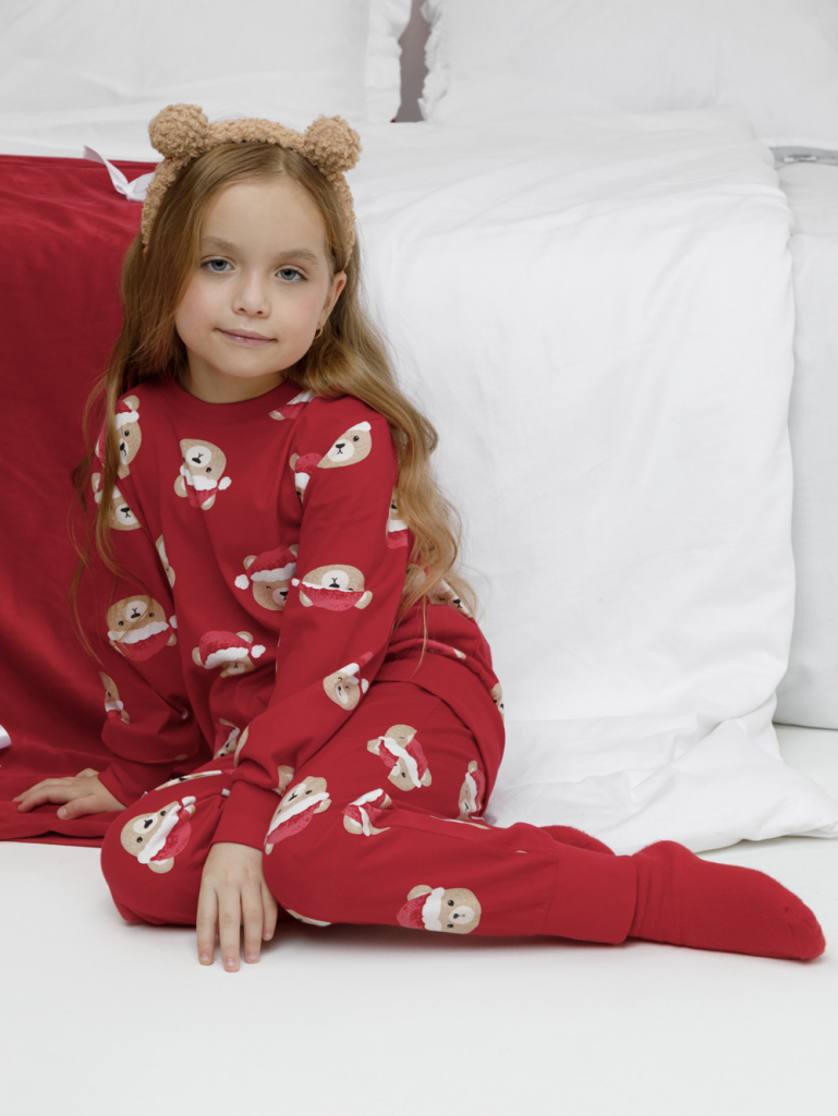 Новогодняя пижама из натурального хлопка. Джемпер с длинными втачными рукавами и брюки с эластичной резинкой в поясе. Мягкие манжеты на рукавах и по низу брюк. Пижама отлично подойдёт для создания уютных домашних образов или в качестве подарка на Новый год и Рождество. Оригинальная набивка выполнена из стойких текстильных гипоаллергенных красителей. Изделие сохраняет цвет и форму после многократных стирок. Все трикотажные полотна производятся в соответствии с нормами швейцарского сертификата ЭкоТекс.