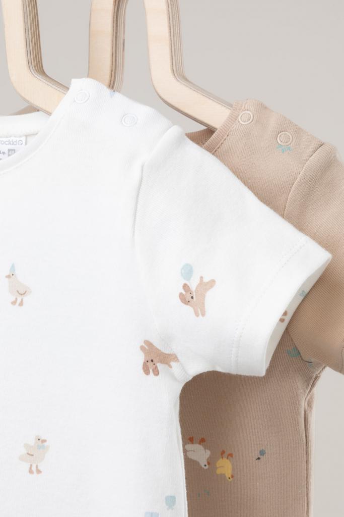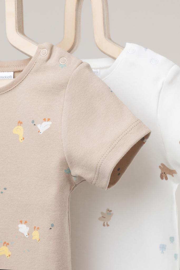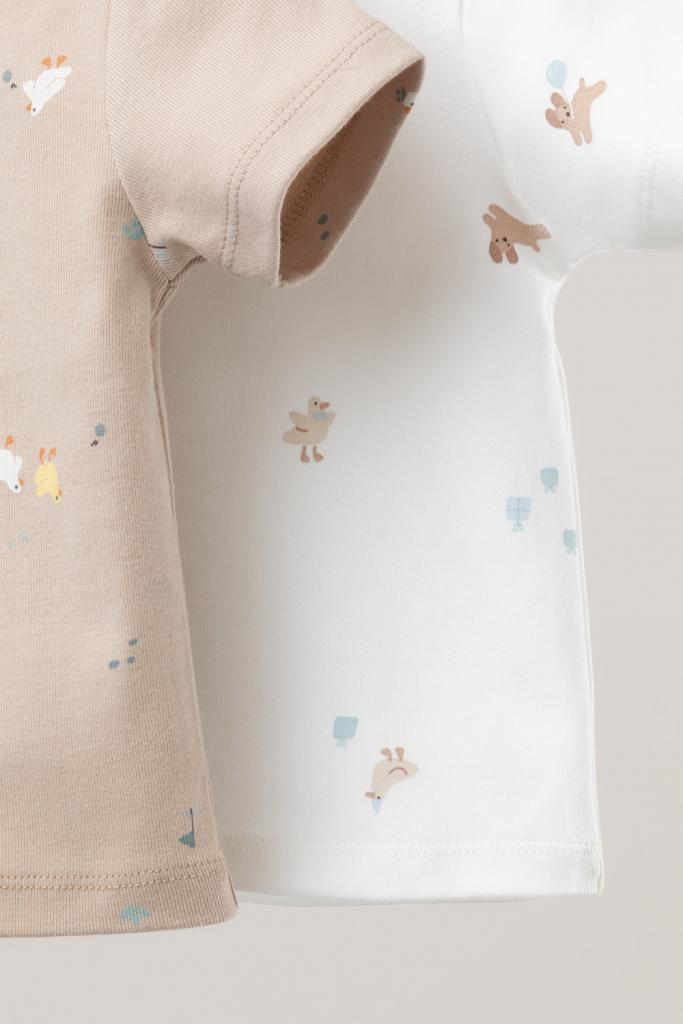 Футболки для мальчика из высококачественного трикотажа, произведённого из натурального хлопка. В упаковке 2 штуки. Для удобства на плече застёжка на кнопки. Оригинальная набивка выполнена из стойких гипоаллергенных текстильных красителей. Все трикотажные полотна производятся в соответствии с нормами Швейцарского сертификата ЭкоТекс.