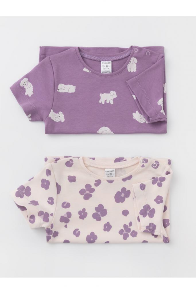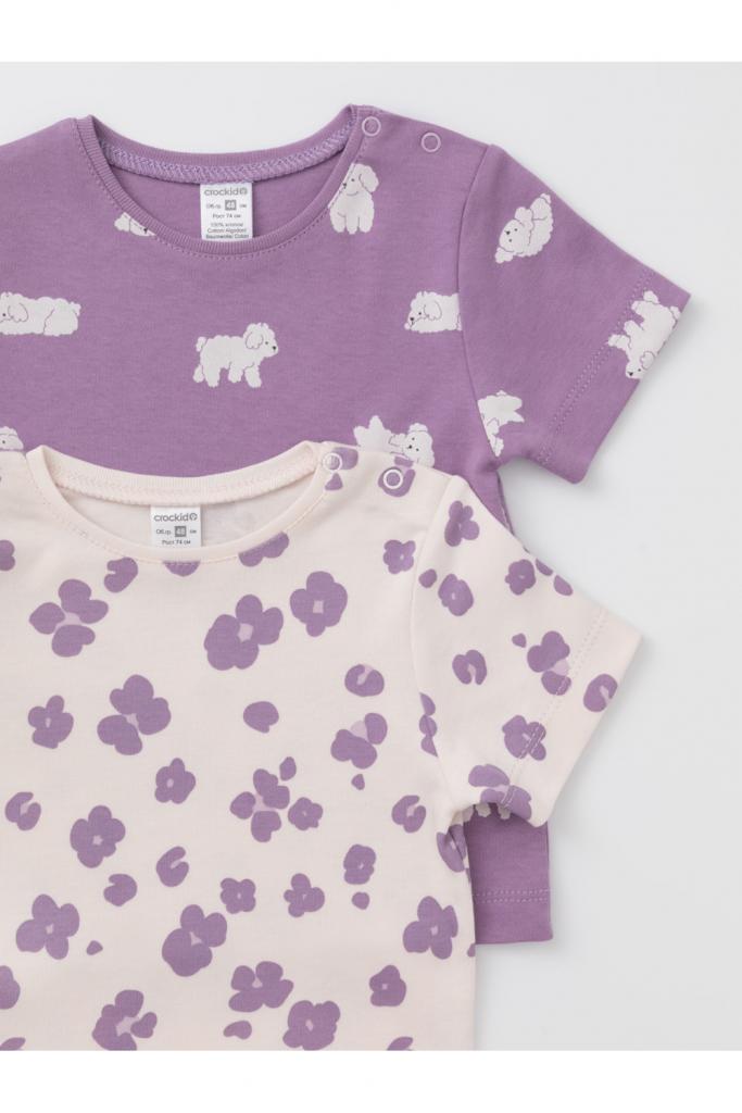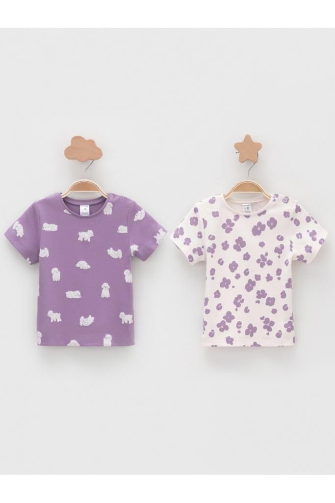 Футболки для девочки из высококачественного трикотажа интерлок. В упаковке 2 штуки. Для удобства на плече застёжка на кнопки. Оригинальная набивка выполнена из стойких гипоаллергенных текстильных красителей. Все трикотажные полотна производятся в соответствии с нормами швейцарского сертификата ЭкоТекс.