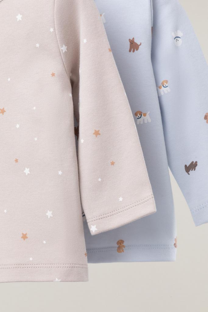 Джемперы лонгсливы для новорождённых из мягкого эластичного трикотажа интерлок, произведённого из натурального хлопка. В упаковке 2 штуки. Застёгиваются на плече на кнопки. Оригинальная набивка выполнена из стойких гипоаллергенных текстильных красителей. Все трикотажные полотна производятся в соответствии с нормами Швейцарского сертификата ЭкоТекс.