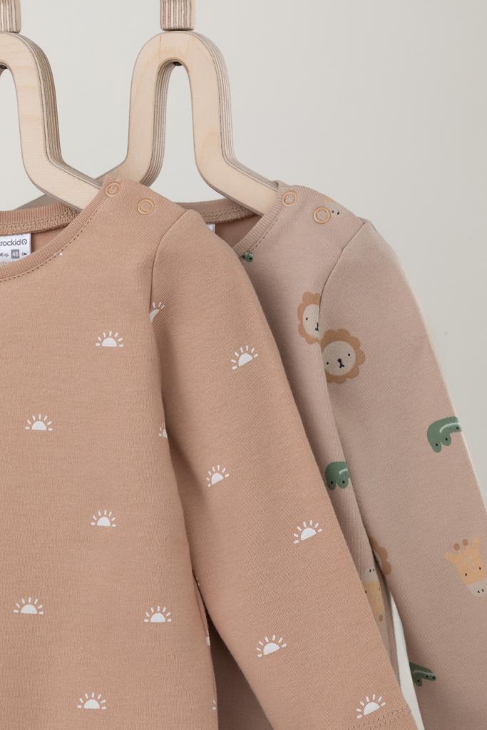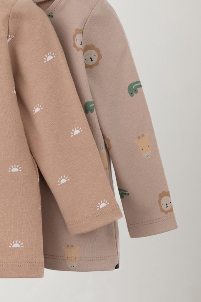 Джемперы лонгсливы для новорождённых из мягкого эластичного трикотажа интерлок, произведённого из натурального хлопка. В упаковке 2 штуки. Застёгиваются на плече на кнопки. Оригинальная набивка выполнена из стойких гипоаллергенных текстильных красителей. Все трикотажные полотна производятся в соответствии с нормами Швейцарского сертификата ЭкоТекс.