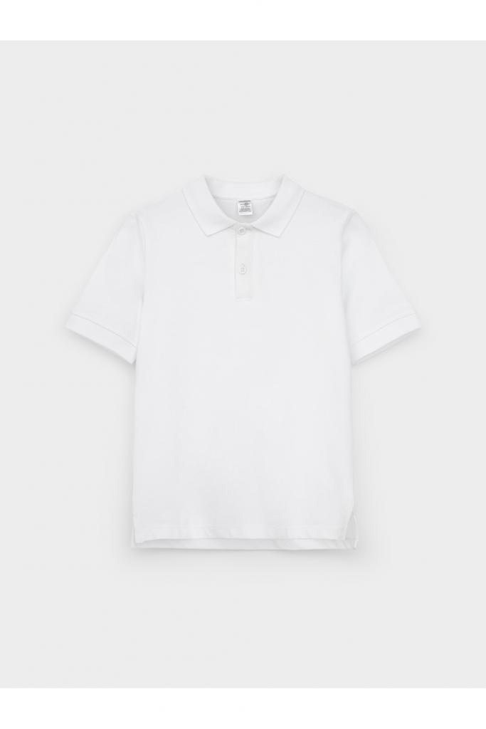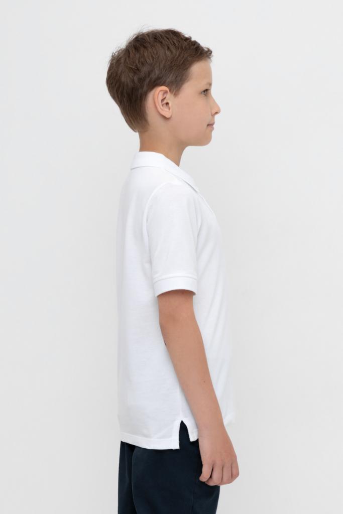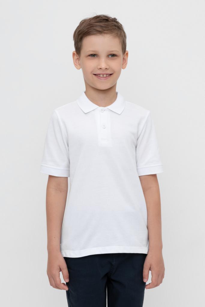 Поло для мальчика из высококачественного трикотажного полотна пике. У изделия вязаный воротник, манжеты и застежка спереди на пуговицы.