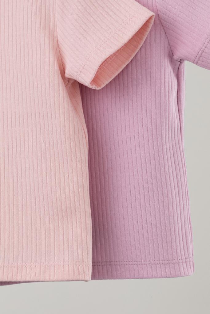 Футболки для девочки из высококачественного трикотажа, произведённого из натурального хлопка. В упаковке 2 штуки. Для удобства на плече застёжка на кнопки. Все трикотажные полотна производятся в соответствии с нормами Швейцарского сертификата ЭкоТекс.