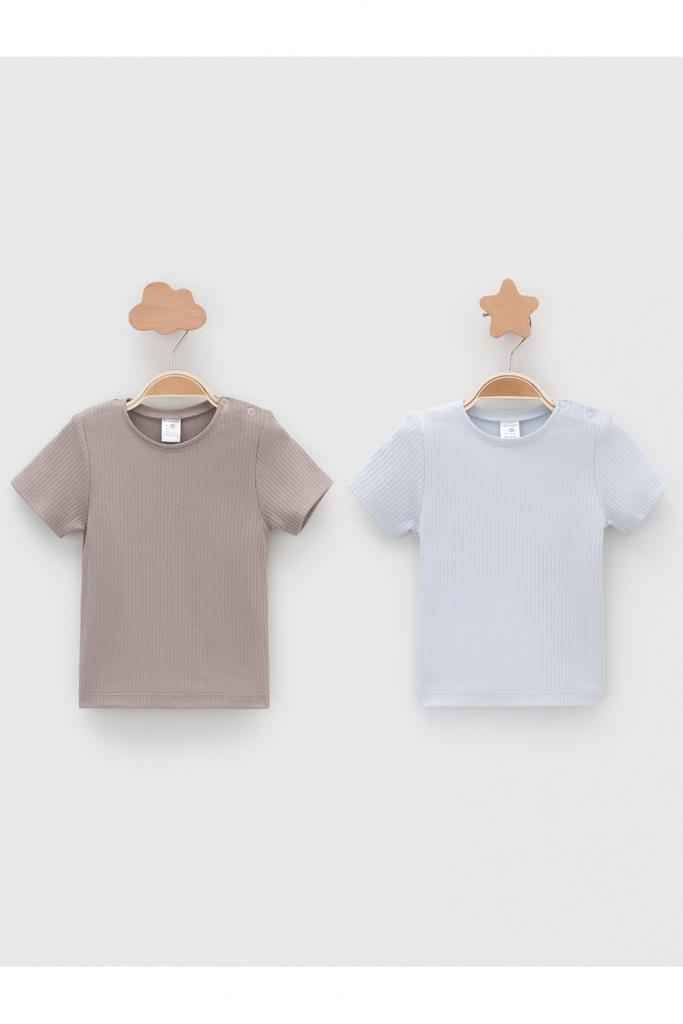 Футболки для мальчика из высококачественного трикотажа, произведённого из натурального хлопка. В упаковке 2 штуки. Для удобства на плече застёжка на кнопки. Все трикотажные полотна производятся в соответствии с нормами швейцарского сертификата ЭкоТекс.