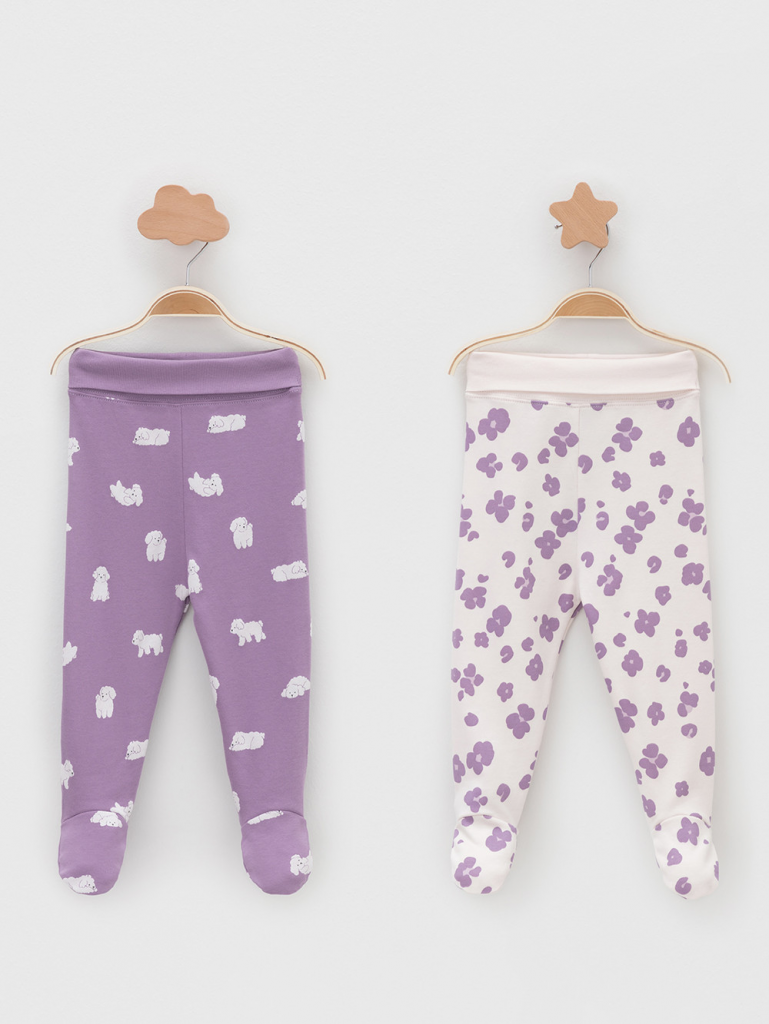 Ползунки для новорождённых из мягкого эластичного трикотажа интерлок, произведённого из натурального хлопка. В упаковке 2 штуки. Пояс на резинке. Оригинальная набивка выполнена из стойких гипоаллергенных текстильных красителей. Все трикотажные полотна производятся в соответствии с нормами швейцарского сертификата ЭкоТекс.