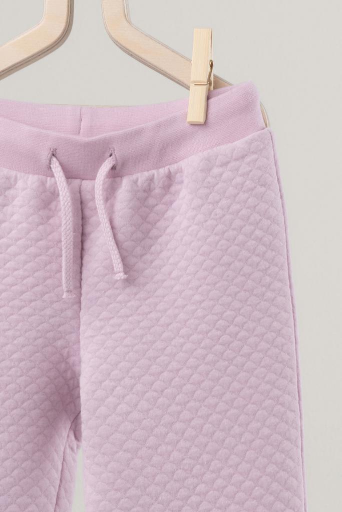 Тёплые брюки из капитония. Капитоний – это стёганое трикотажное полотно с утеплителем из полиэстеровой нити. Изделие имеет мягкие эластичные манжеты и пояс из рибаны. Пояс регулируется по ширине с помощью шнурка. Все трикотажные полотна производятся в соответствии с нормами Швейцарского сертификата ЭкоТекс.