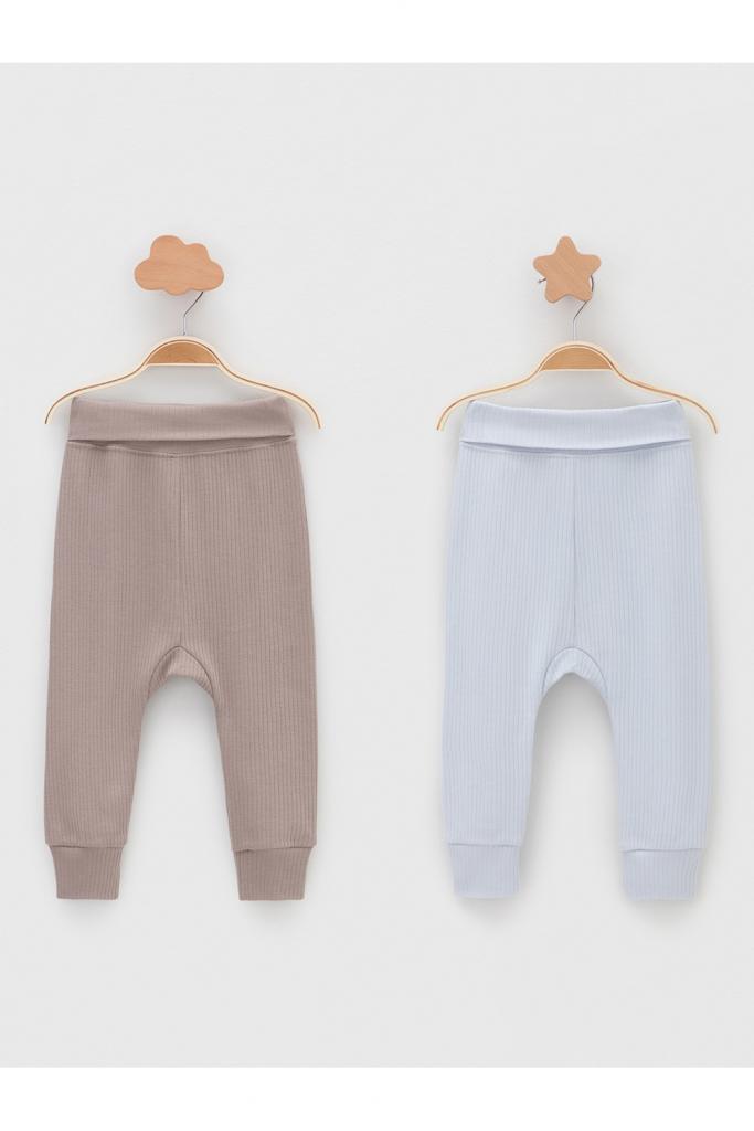Брюки для новорождённых из мягкого эластичного трикотажа, произведённого из натурального хлопка. В упаковке 2 штуки. Пояс с отворотом на резинке. Все трикотажные полотна производятся в соответствии с нормами швейцарского сертификата ЭкоТекс.
