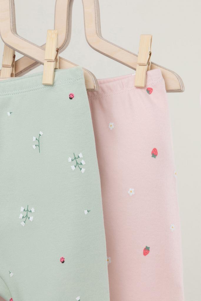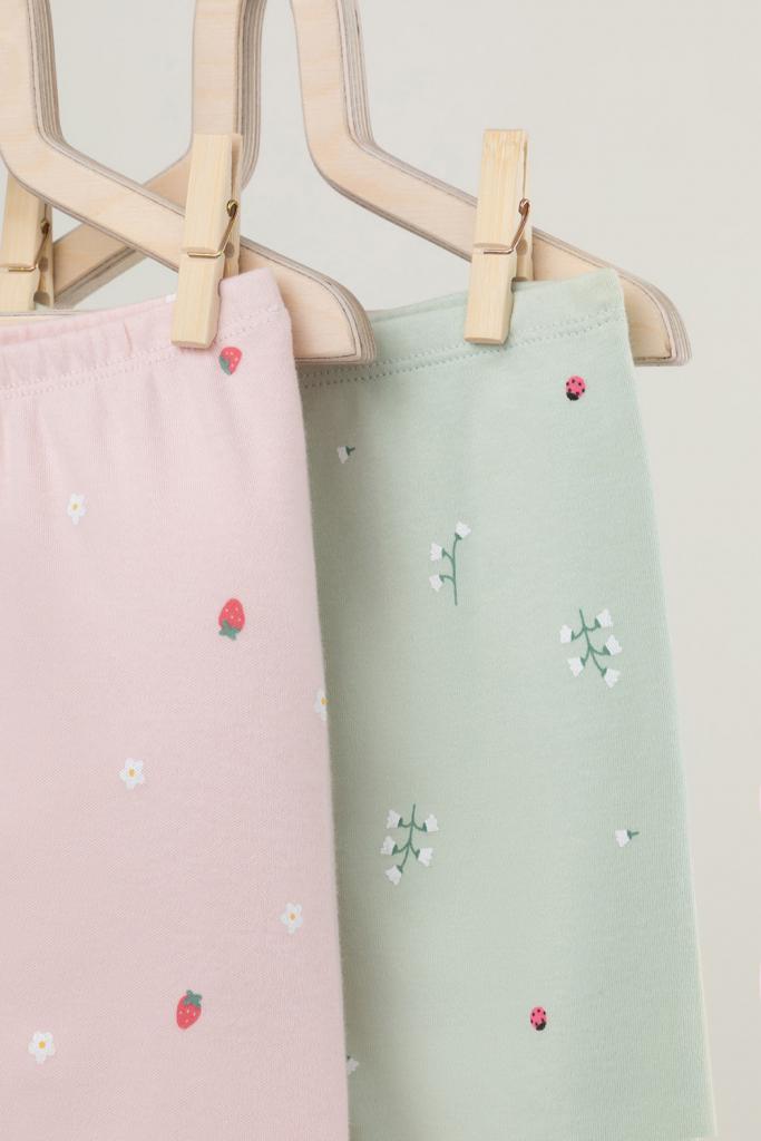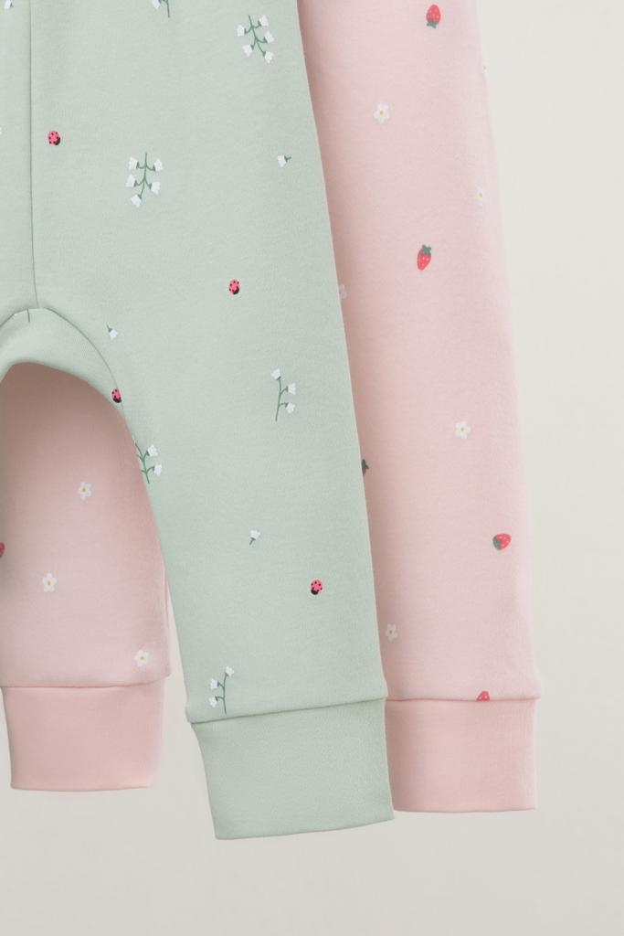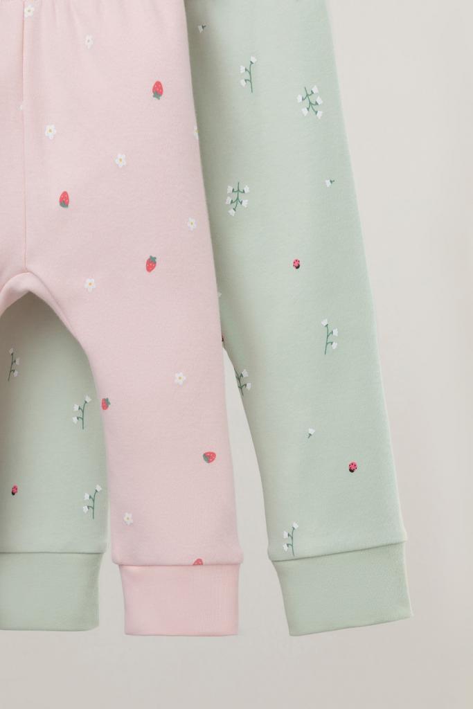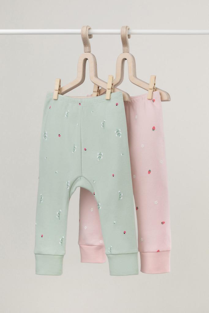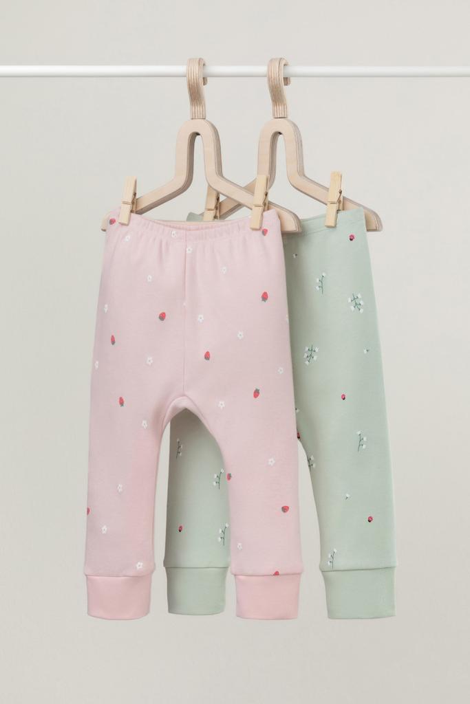 Брюки в упаковке 2 шт для новорождённых из мягкого, эластичного трикотажа, произведенного из натурального хлопка. Пояс на резинке. Оригинальная набивка выполнена из стойких, гипоаллергенных текстильных красителей. Все трикотажные полотна производятся в соответсвии с нормами Швейцарского сертификата ЭкоТекс.