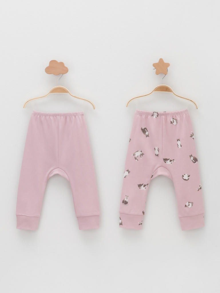 Брюки для новорождённых из мягкого эластичного трикотажа интерлок, произведённого из натурального хлопка. В упаковке 2 штуки. Пояс на резинке. Оригинальная набивка выполнена из стойких гипоаллергенных текстильных красителей. Все трикотажные полотна производятся в соответствии с нормами швейцарского сертификата ЭкоТекс.
