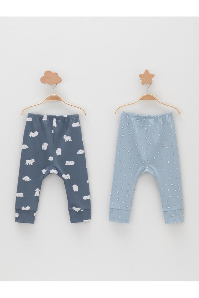 Брюки для новорождённых из мягкого эластичного трикотажа интерлок, произведённого из натурального хлопка. В упаковке 2 штуки. Пояс на резинке. Оригинальная набивка выполнена из стойких гипоаллергенных текстильных красителей. Все трикотажные полотна производятся в соответствии с нормами швейцарского сертификата ЭкоТекс.