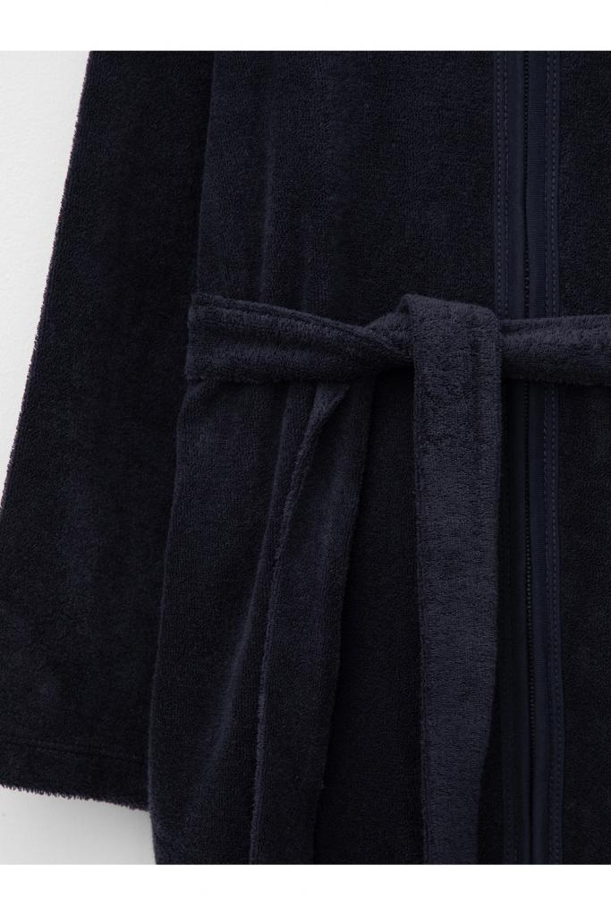 Однотонный махровый халат для мальчика на молнии без начёса. Капюшон с мягким подкладом. В боковых швах удобные карманы. Рукава и края изделия обработаны кантом.