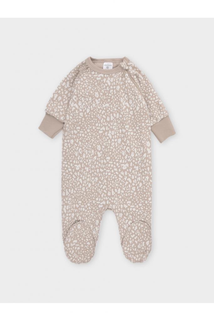 Комбинезон для новорождённых из мягкого, эластичного трикотажа, произведённого из натурального хлопка. Изделие застёгивается на молнию и кнопку. На рукавах мягкие манжеты. Оригинальная набивка выполнена из стойких, гипоаллергенных текстильных красителей. Все трикотажные полотна производятся в соответствии с нормами Швейцарского сертификата ЭкоТекс.