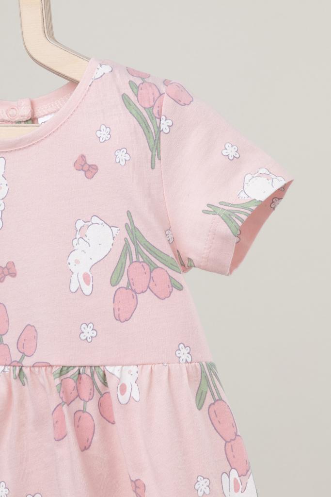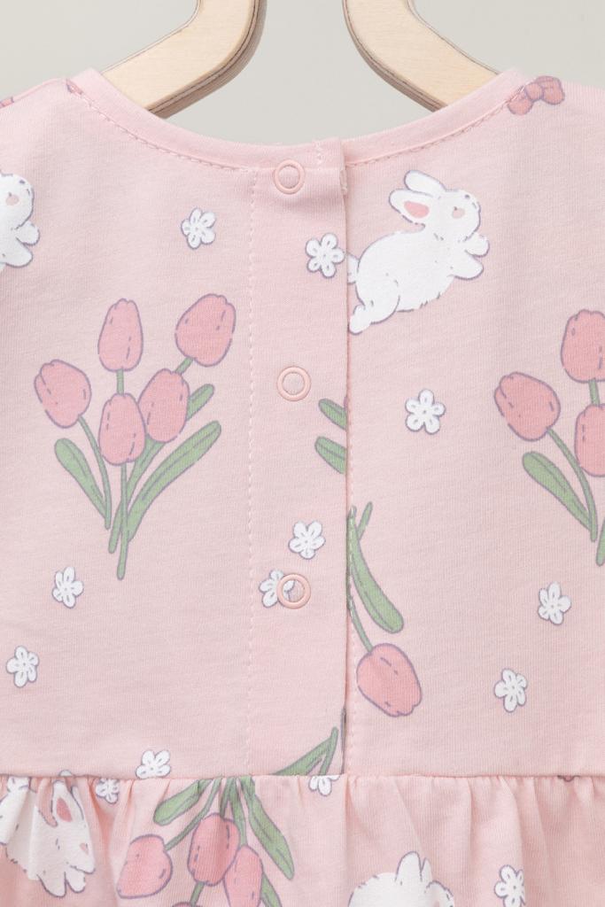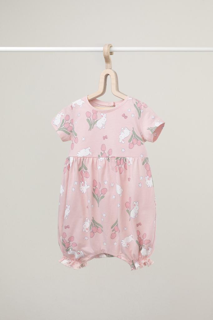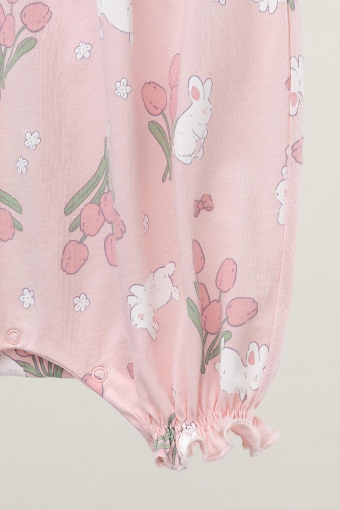 К 6495/тропический персик,зайчики и тюльпаны полукомбинезон (песочник)