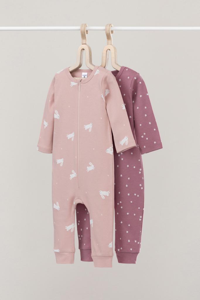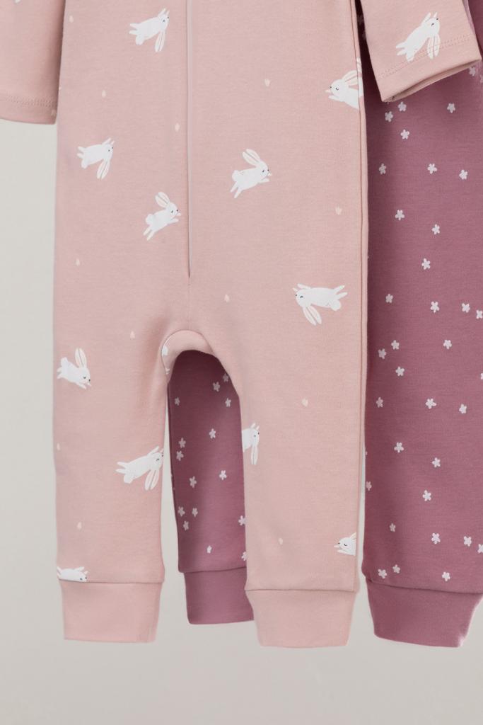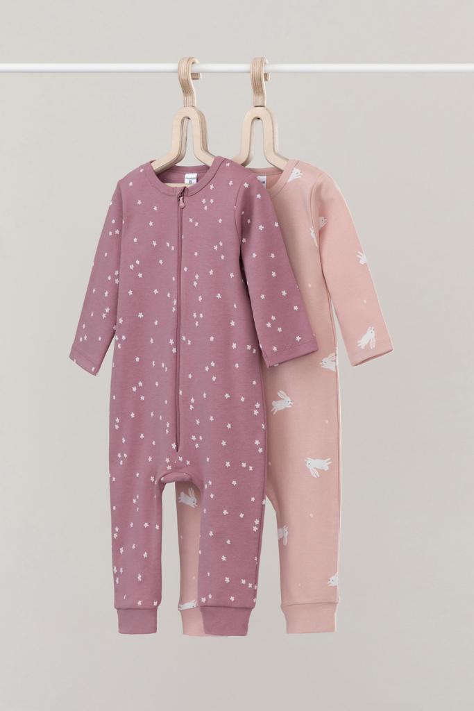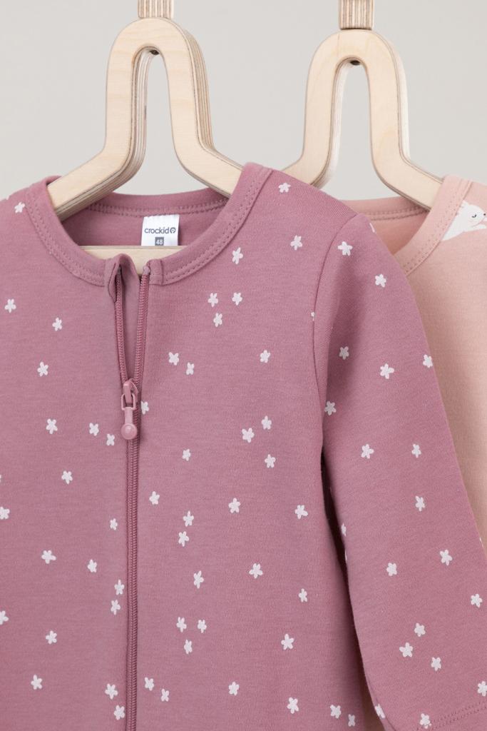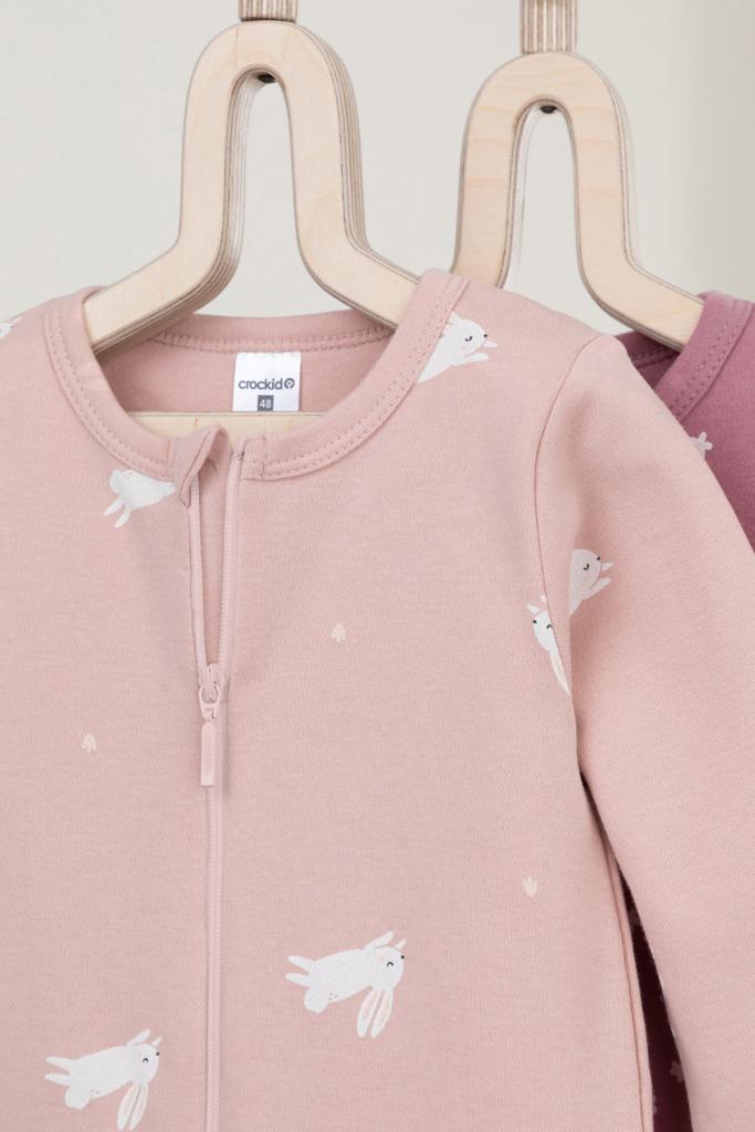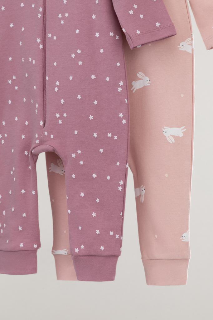 Комбинезоны для новорождённых из мягкого эластичного трикотажа интерлок, произведённого из натурального хлопка. В упаковке 2 штуки. Застёгиваются спереди на молнию, предусмотрена защита подбородка. Оригинальная набивка выполнена из стойких гипоаллергенных текстильных красителей. Все трикотажные полотна производятся в соответствии с нормами Швейцарского сертификата ЭкоТекс.