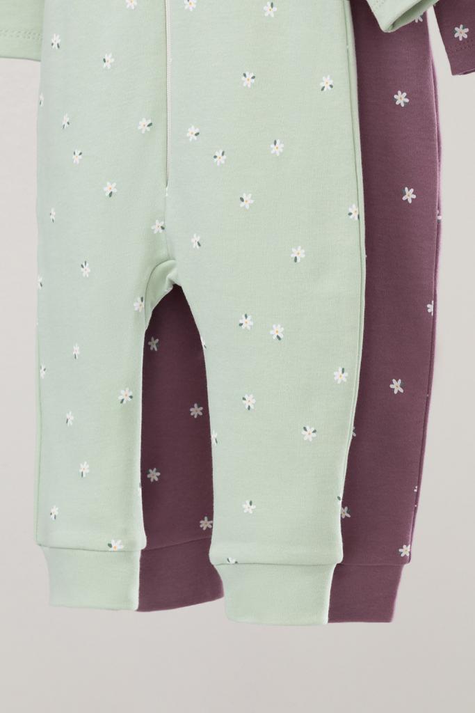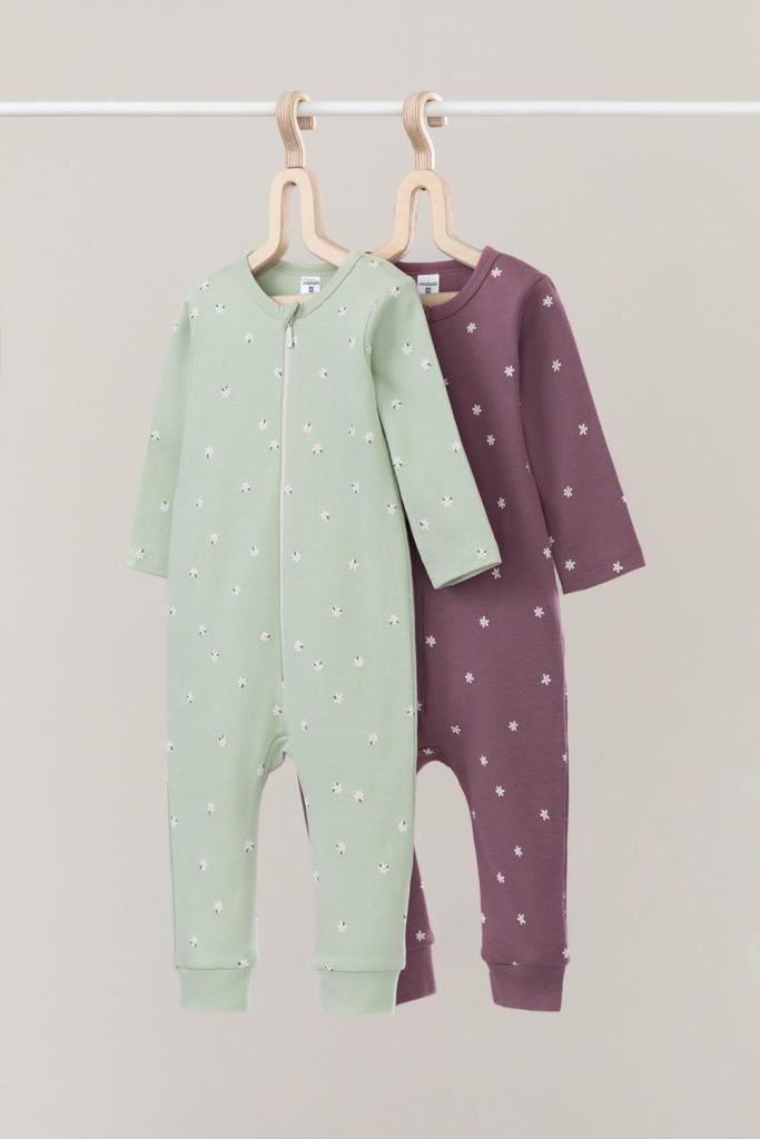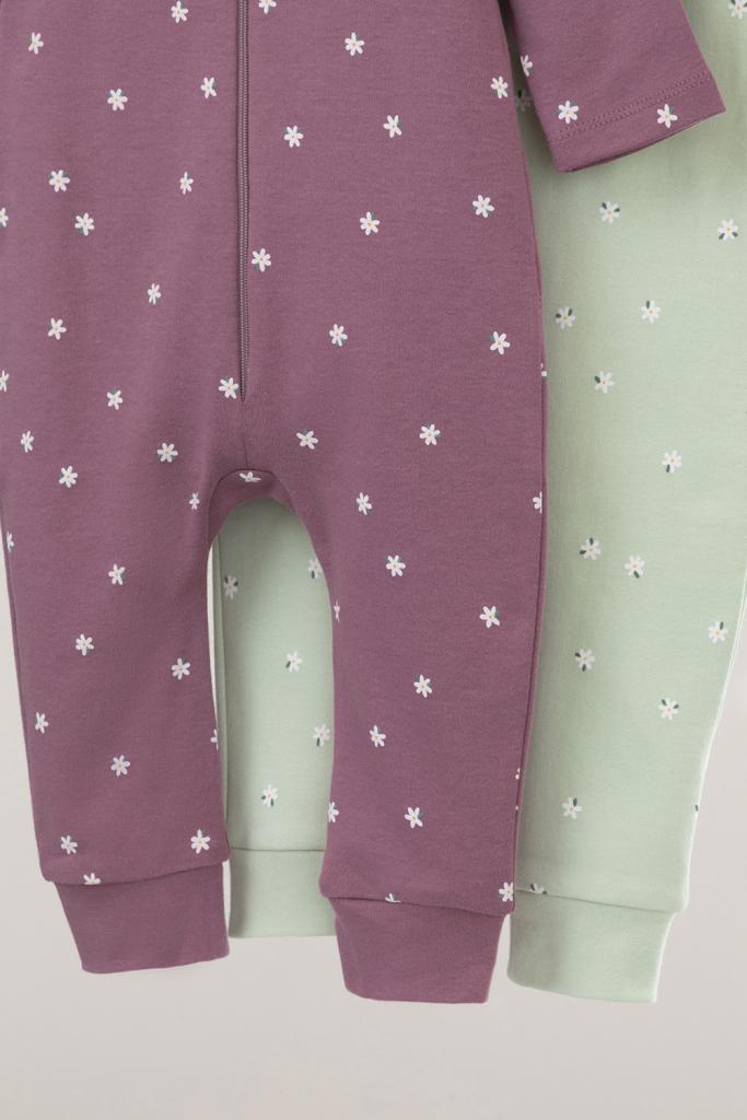 Комбинезоны в упаковке 2 шт для новорожденных из мягкого, эластичного трикотажа, произведенного из натурального хлопка. Изделие застегивается на молнию. Оригинальная набивка выполнена из стойких, гипоаллергенных текстильных красителей. Все трикотажные полотна производятся в соответсвии с нормами Швейцарского сертификата ЭкоТекс.