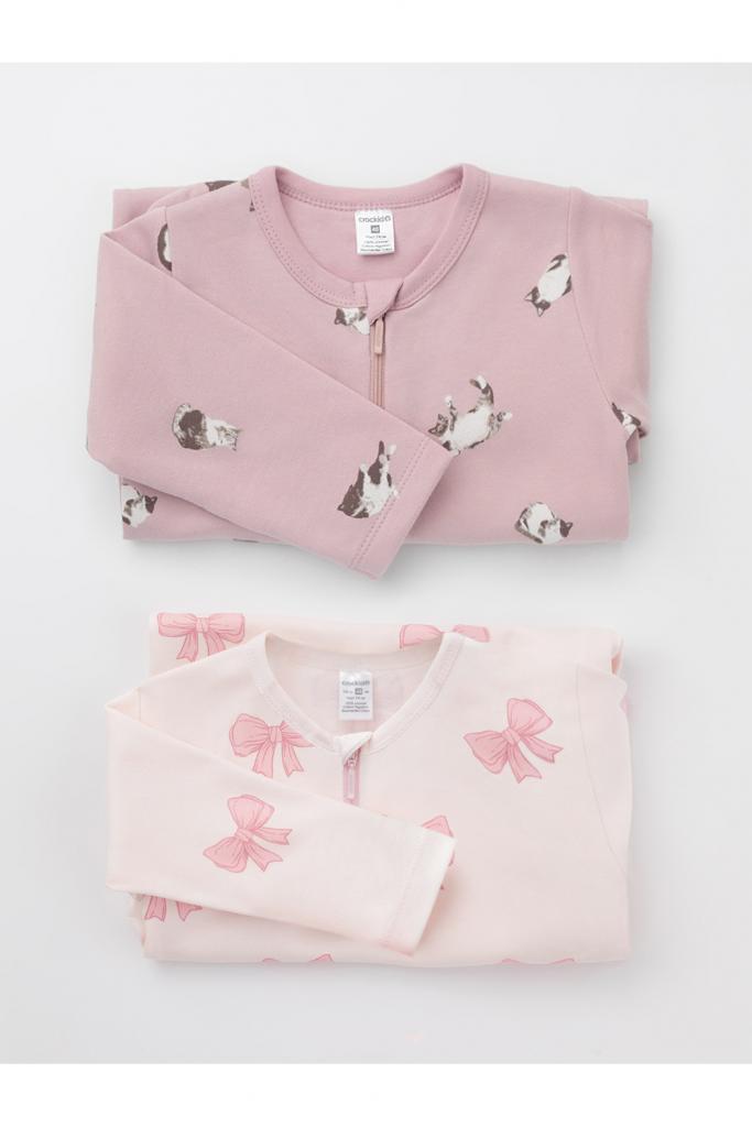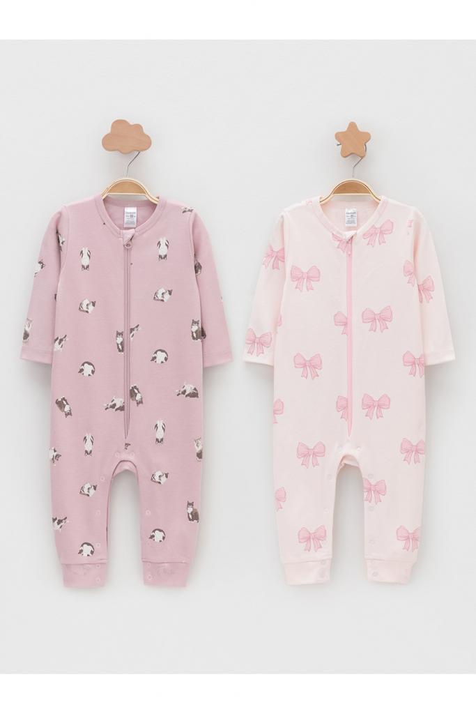 Комбинезоны для новорождённых из эластичного трикотажа, произведённого из натурального хлопка. В упаковке 2 штуки. Застёгиваются спереди на молнию с мягкой защитой шеи и подбородка. По шаговому шву застёжка на кнопки. Оригинальная набивка выполнена из стойких гипоаллергенных текстильных красителей. Все трикотажные полотна производятся в соответствии с нормами швейцарского сертификата ЭкоТекс.