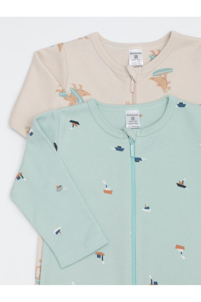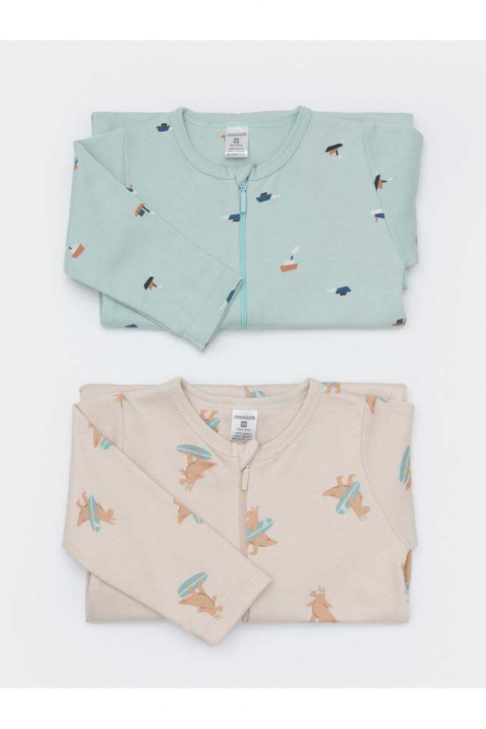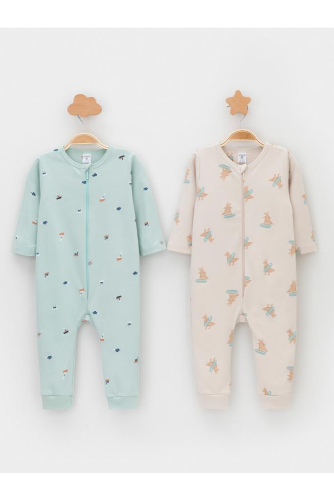 Комбинезоны для новорождённых из мягкого эластичного трикотажа интерлок, произведённого из натурального хлопка. В упаковке 2 штуки. Застёгиваются спереди на молнию, предусмотрена защита подбородка. Оригинальная набивка выполнена из стойких гипоаллергенных текстильных красителей. Все трикотажные полотна производятся в соответствии с нормами Швейцарского сертификата ЭкоТекс.