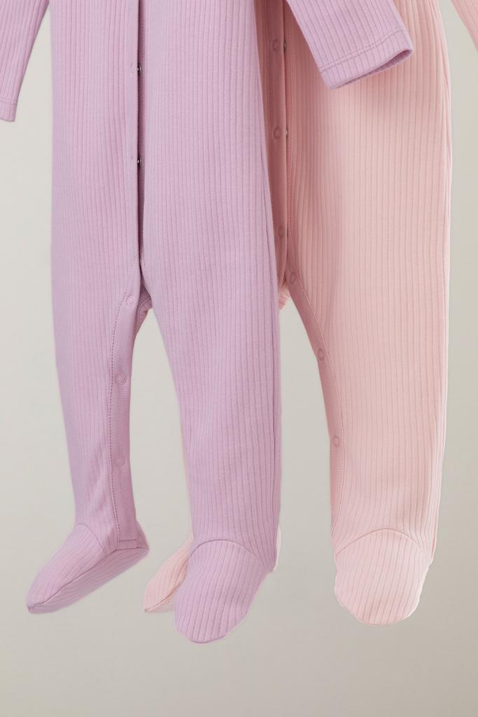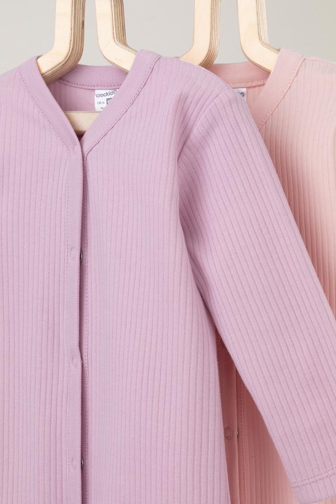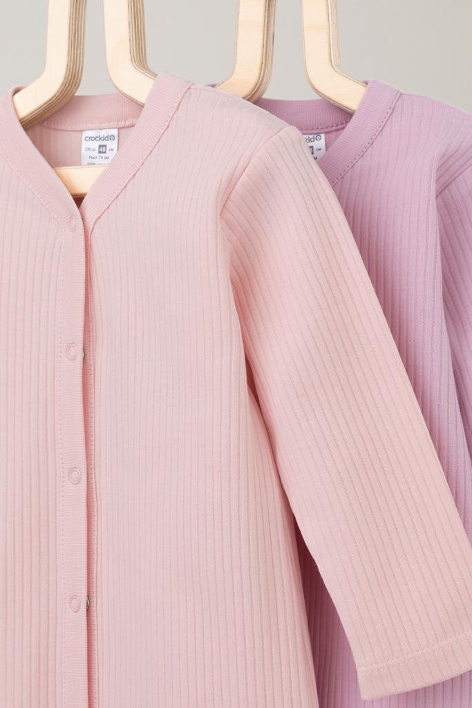 Комбинезоны для новорождённых из мягкого эластичного трикотажа, произведённого из натурального хлопка. В упаковке 2 штуки. Застёгиваются спереди на кнопки. В размере 56 на рукавах предусмотрены антицарапки, швы выполнены наружу. Все трикотажные полотна производятся в соответствии с нормами Швейцарского сертификата ЭкоТекс.