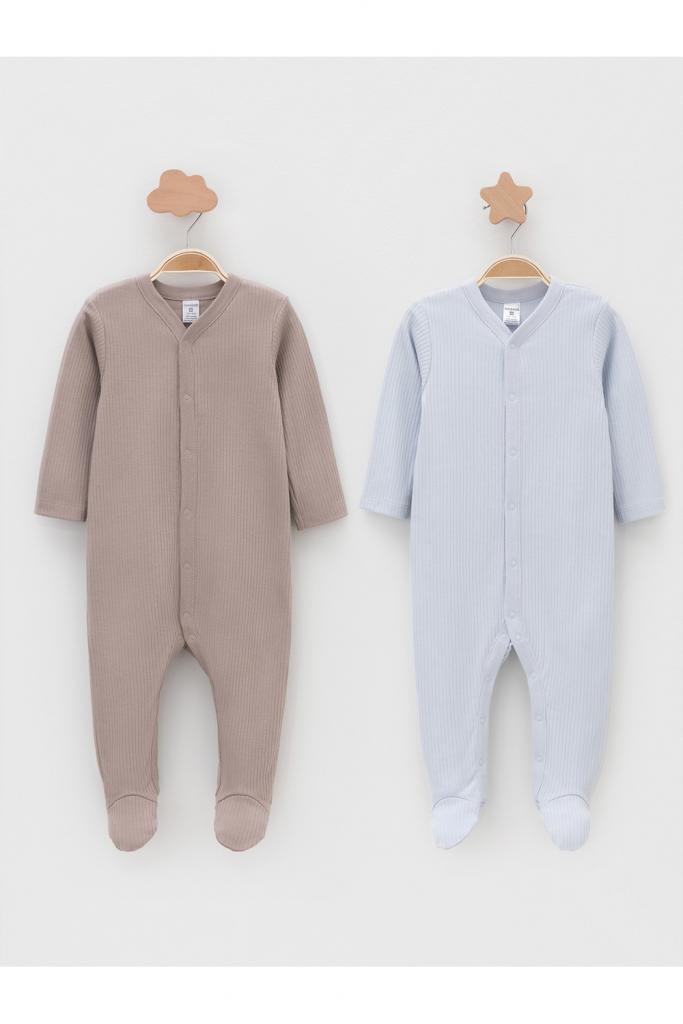 Комбинезоны для новорождённых из мягкого эластичного трикотажа, произведённого из натурального хлопка. В упаковке 2 штуки. Застёгиваются спереди на кнопки. В размере 56 на рукавах предусмотрены антицарапки, швы выполнены наружу. Все трикотажные полотна производятся в соответствии с нормами швейцарского сертификата ЭкоТекс.