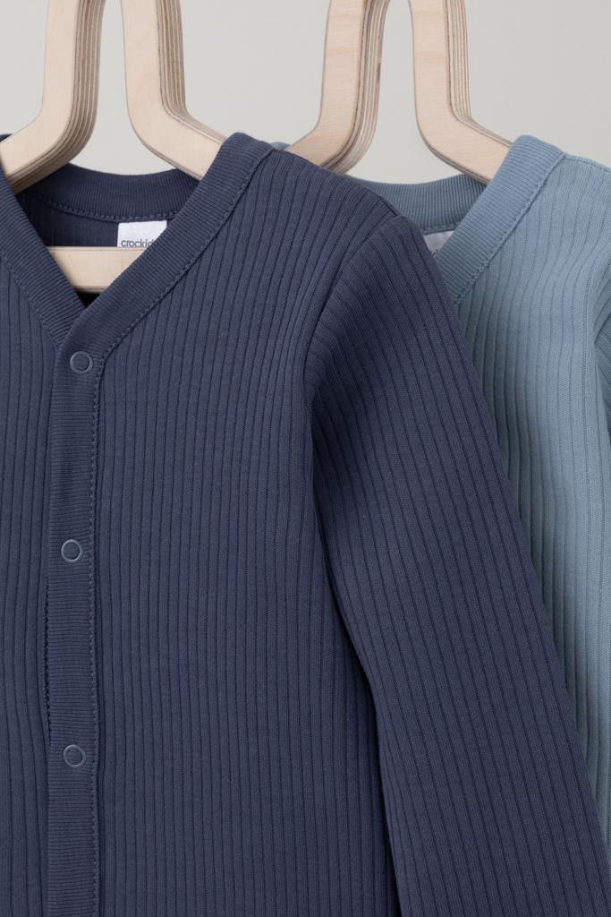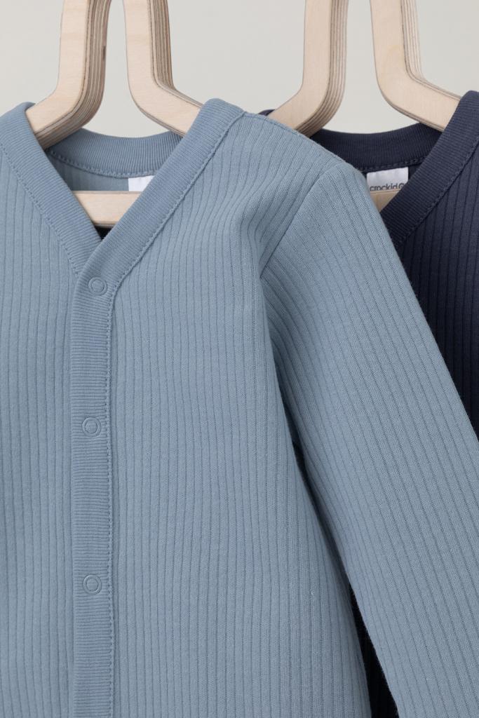Комбинезоны для новорождённых из мягкого эластичного трикотажа, произведённого из натурального хлопка. В упаковке 2 штуки. Застёгиваются спереди на кнопки. В размере 56 на рукавах предусмотрены антицарапки, швы выполнены наружу. Все трикотажные полотна производятся в соответствии с нормами Швейцарского сертификата ЭкоТекс.