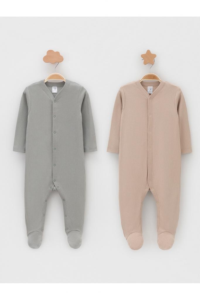 Комбинезоны для новорождённых из мягкого эластичного трикотажа, произведённого из натурального хлопка. В упаковке 2 штуки. Застёгиваются спереди на кнопки. В размере 56 на рукавах предусмотрены антицарапки, швы выполнены наружу. Все трикотажные полотна производятся в соответствии с нормами швейцарского сертификата ЭкоТекс. .