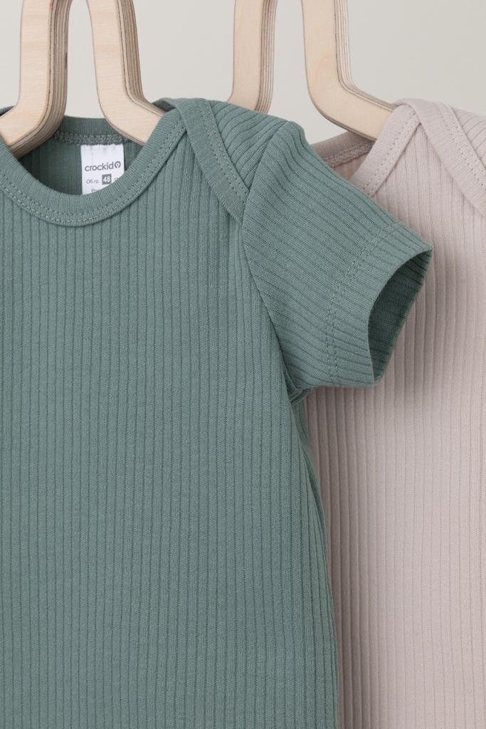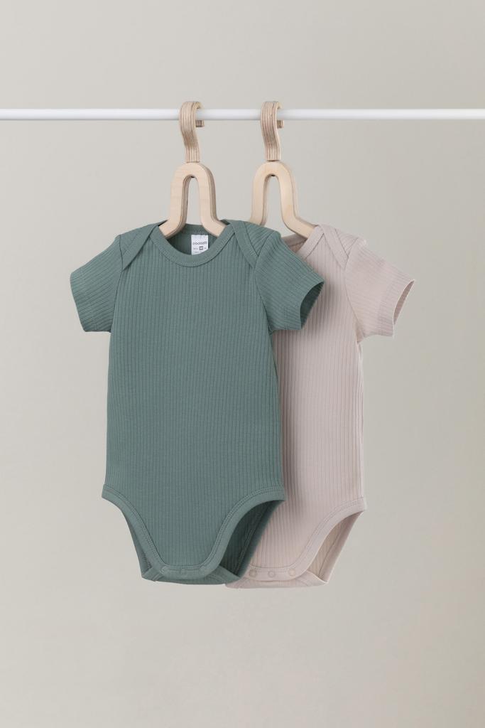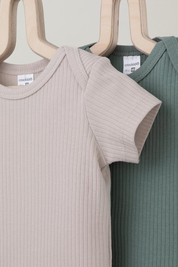 Боди для новорождённых из мягкого эластичного трикотажа, произведённого из натурального хлопка. В упаковке 2 штуки. Застёгиваются на кнопки по низу изделий. Все трикотажные полотна производятся в соответствии с нормами Швейцарского сертификата ЭкоТекс.