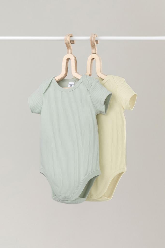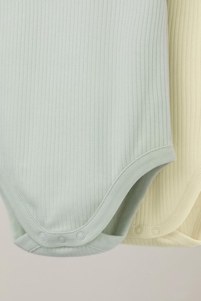 Боди для новорождённых из мягкого эластичного трикотажа, произведённого из натурального хлопка. В упаковке 2 штуки. Застёгиваются на кнопки по низу изделий. Все трикотажные полотна производятся в соответствии с нормами Швейцарского сертификата ЭкоТекс.