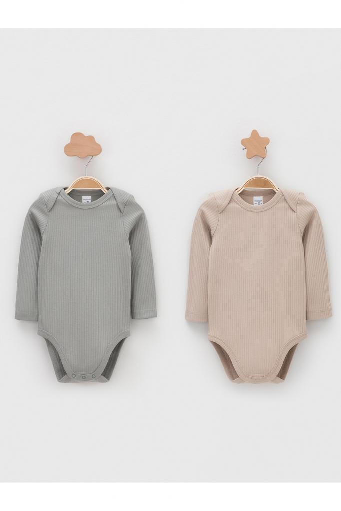 Боди для новорождённых из мягкого эластичного трикотажа, произведённого из натурального хлопка. В упаковке 2 штуки. Застёгиваются на кнопки по низу изделий. Все трикотажные полотна производятся в соответствии с нормами швейцарского сертификата ЭкоТекс.