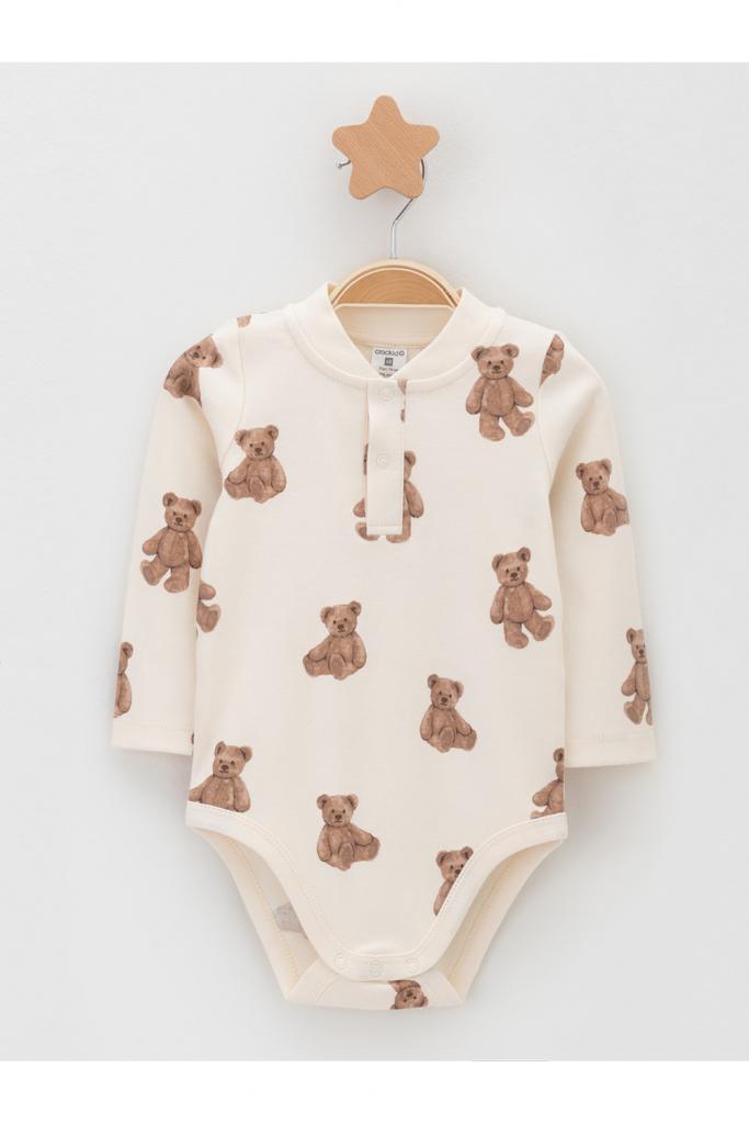 Боди для новорождённого из мягкого эластичного трикотажа, произведённого из натурального хлопка.Застёгивается на кнопки спереди и по низу изделия. Оригинальная набивка выполнена из стойких гипоаллергенных текстильных красителей. Все трикотажные полотна производятся в соответствии с нормами швейцарского сертификата ЭкоТекс.