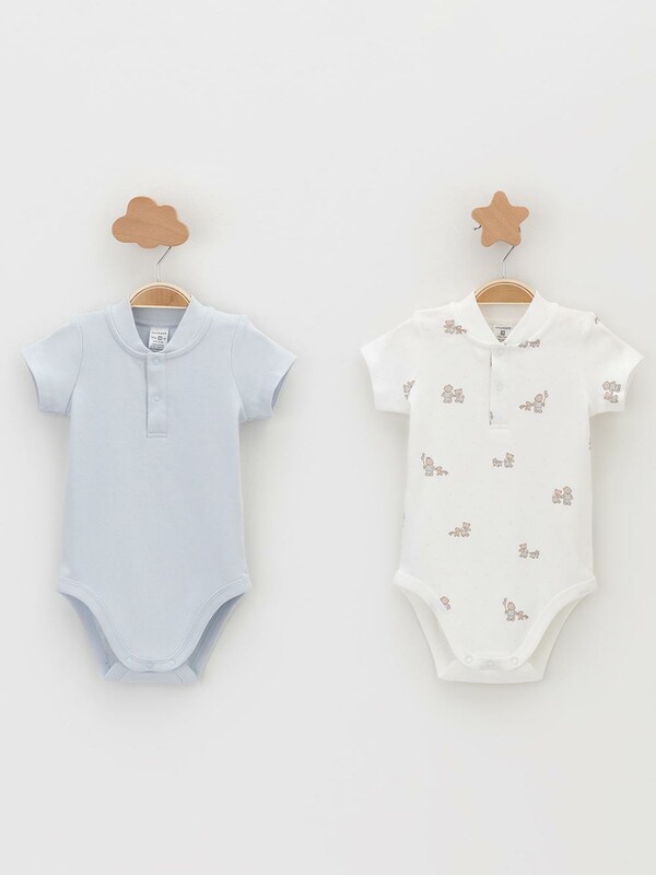 Боди для новорождённых из мягкого эластичного трикотажа, произведённого из натурального хлопка. В упаковке 2 штуки. Застёгиваются на кнопки спереди и по низу изделий. Оригинальная набивка выполнена из стойких гипоаллергенных текстильных красителей. Все трикотажные полотна производятся в соответствии с нормами швейцарского сертификата ЭкоТекс.
