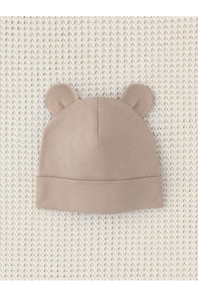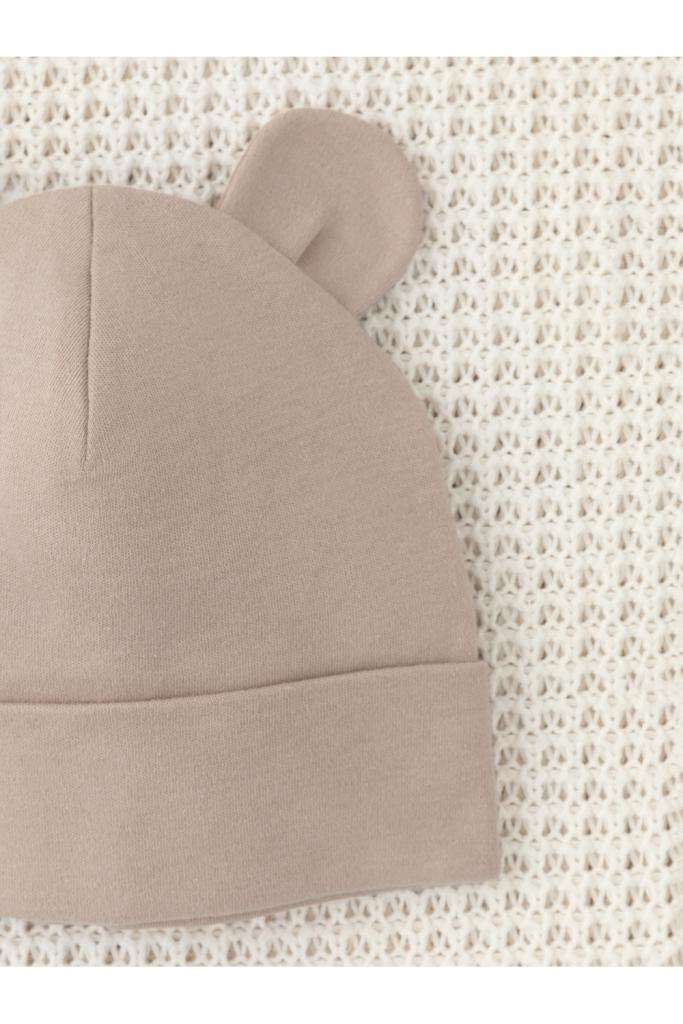 Шапка с отворотом для новорождённых из мягкого эластичного трикотажа интерлок, произведённого из натурального хлопка. Украшена декоративными ушками. Все трикотажные полотна производятся в соответствии с нормами Швейцарского сертификата ЭкоТекс.