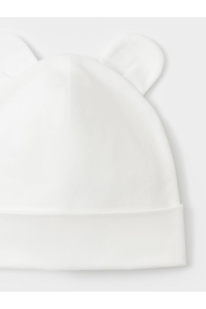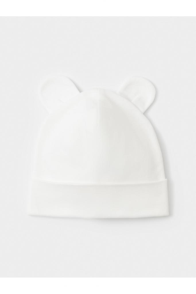 Шапка с отворотом для новорождённых из мягкого эластичного трикотажа интерлок, произведённого из натурального хлопка. Украшена декоративными ушками. Все трикотажные полотна производятся в соответствии с нормами швейцарского сертификата ЭкоТекс.