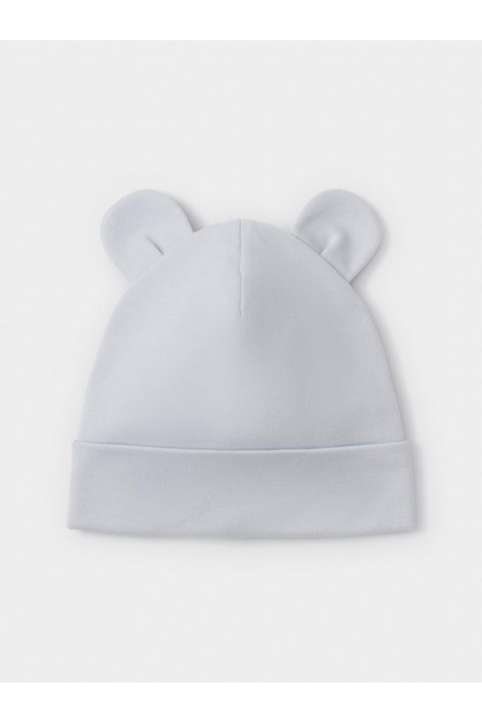 Шапка с отворотом для новорождённых из мягкого эластичного трикотажа интерлок, произведённого из натурального хлопка. Украшена декоративными ушками. Все трикотажные полотна производятся в соответствии с нормами швейцарского сертификата ЭкоТекс.