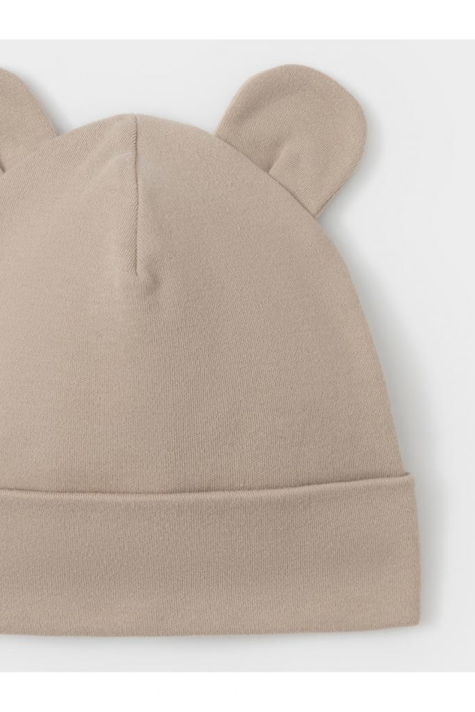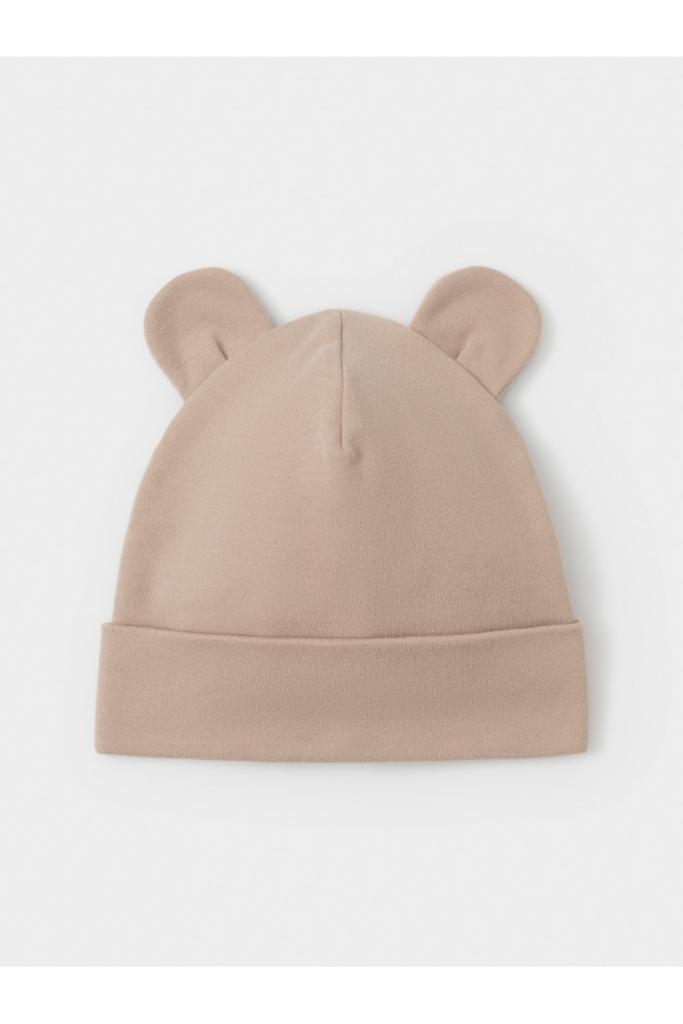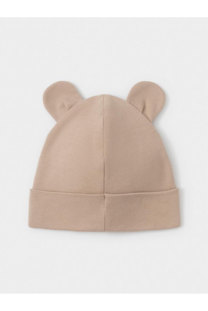 Шапка с отворотом для новорождённых из мягкого эластичного трикотажа интерлок, произведённого из натурального хлопка. Украшена декоративными ушками. Все трикотажные полотна производятся в соответствии с нормами швейцарского сертификата ЭкоТекс.