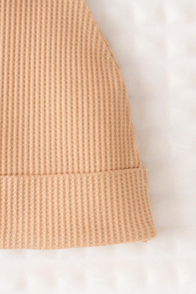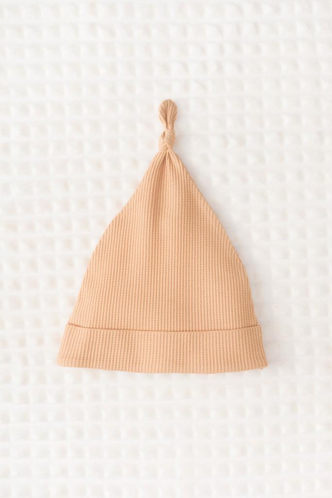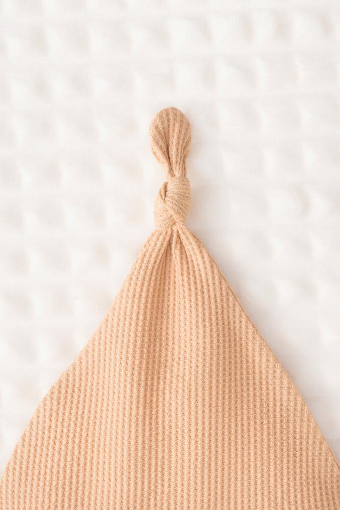Шапка из вафельного полотна для новорожденных из мягкого, эластичного трикотажа, произведенного из натурального хлопка. Все трикотажные полотна производятся в соответсвии с нормами Швейцарского сертификата ЭкоТекс.