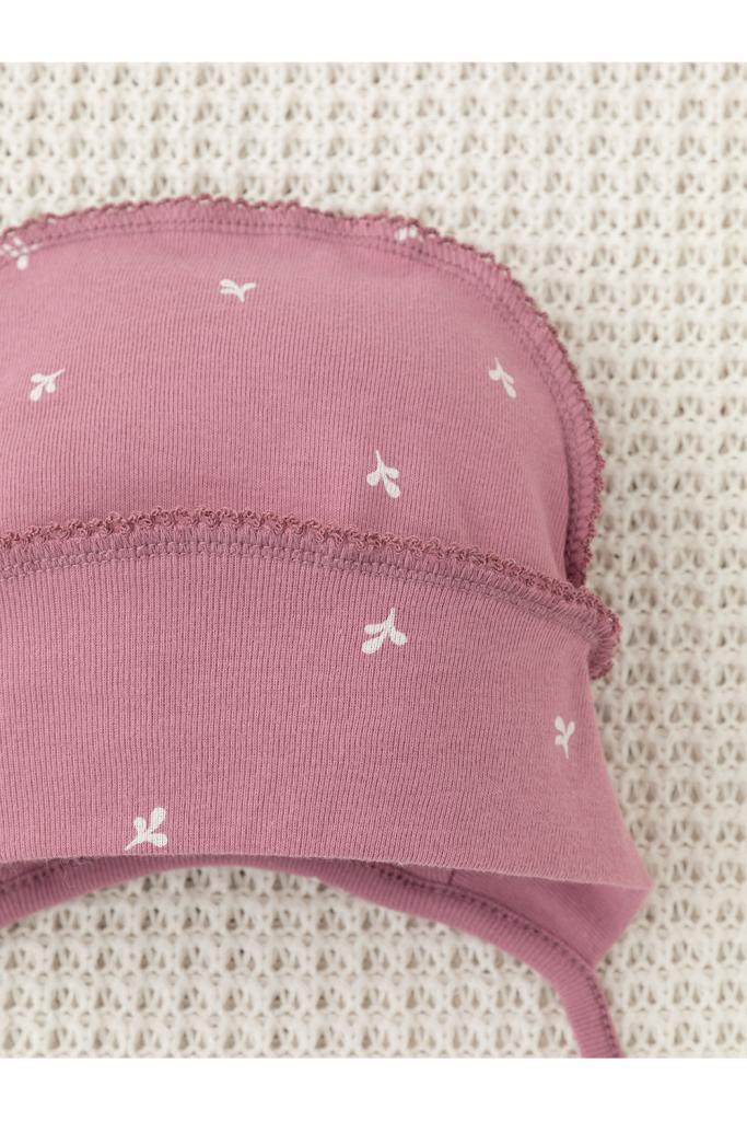 Шапочка на завязках для новорождённых. Изготовлена из мягкого эластичного трикотажа интерлок, произведённого из натурального хлопка. Все трикотажные полотна производятся в соответствии с нормами швейцарского сертификата ЭкоТекс.