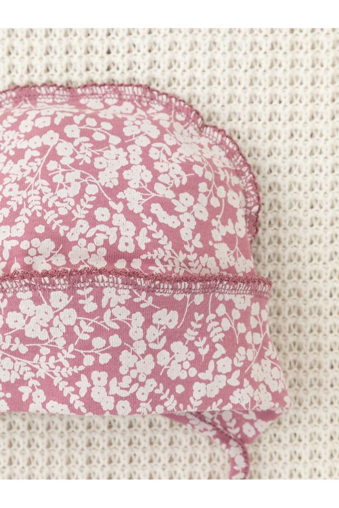 Шапочка на завязках для новорождённых. Изготовлена из мягкого эластичного трикотажа интерлок, произведённого из натурального хлопка. Все трикотажные полотна производятся в соответствии с нормами швейцарского сертификата ЭкоТекс.