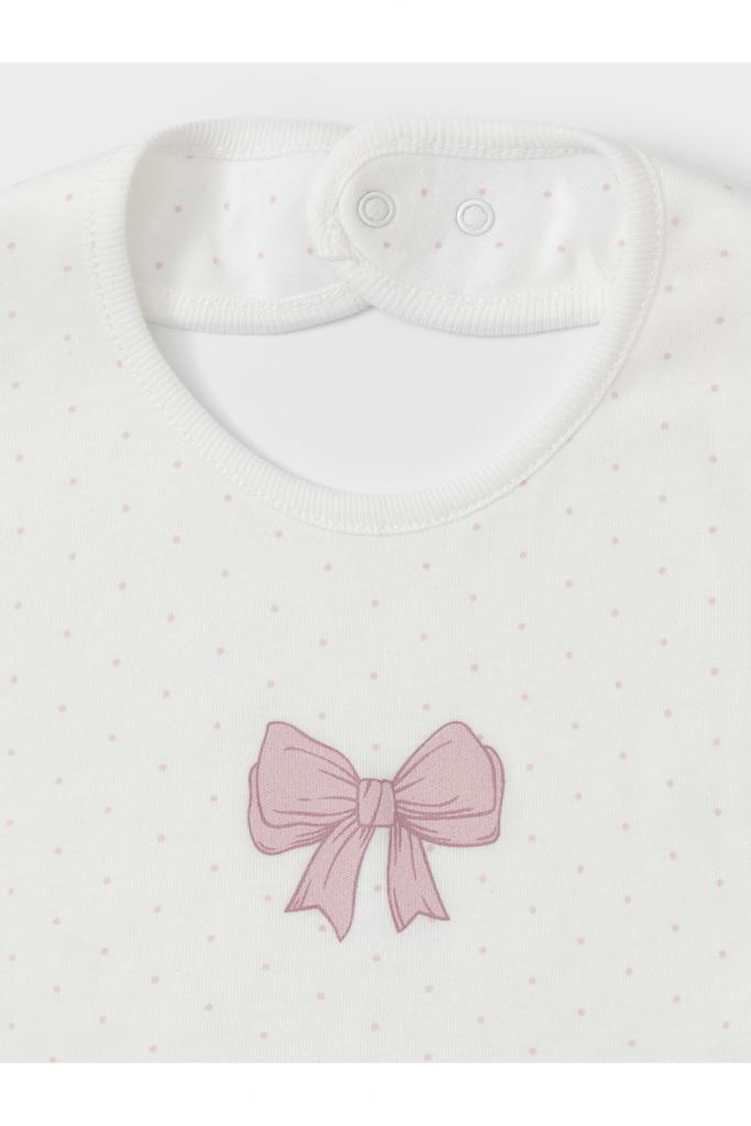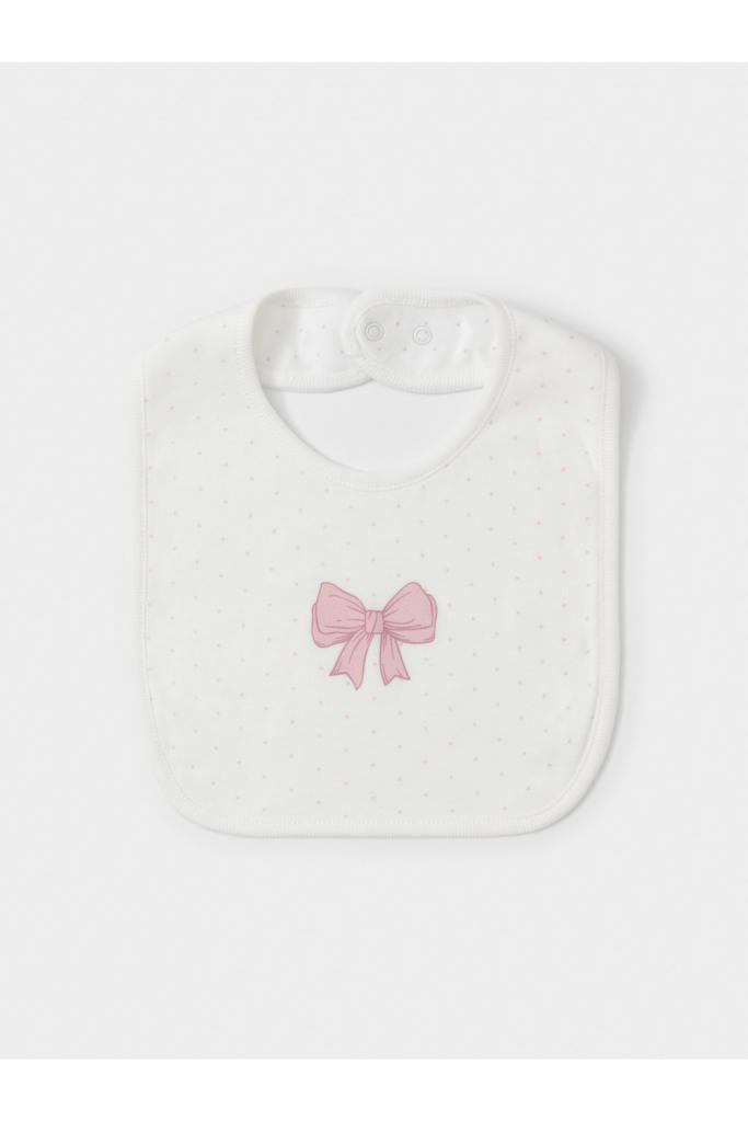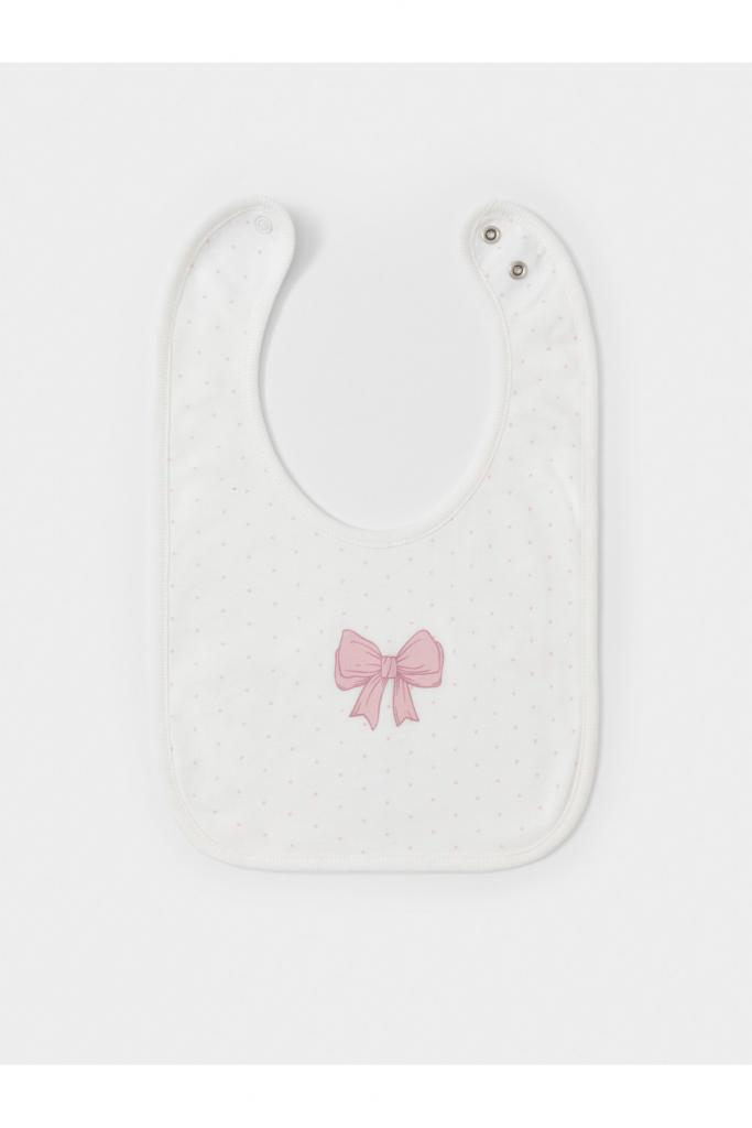 Нагрудник для новорождённых из мягкого эластичного трикотажа интерлок, произведённого из натурального хлопка. Застёгивается на кнопки. Украшен принтом. Все трикотажные полотна производятся в соответствии с нормами швейцарского сертификата ЭкоТекс.