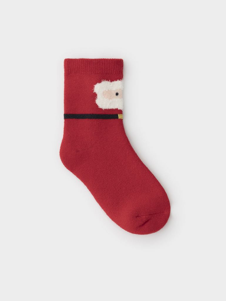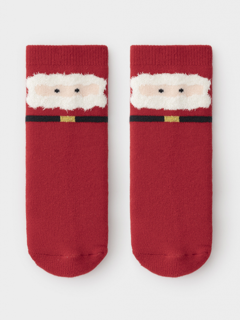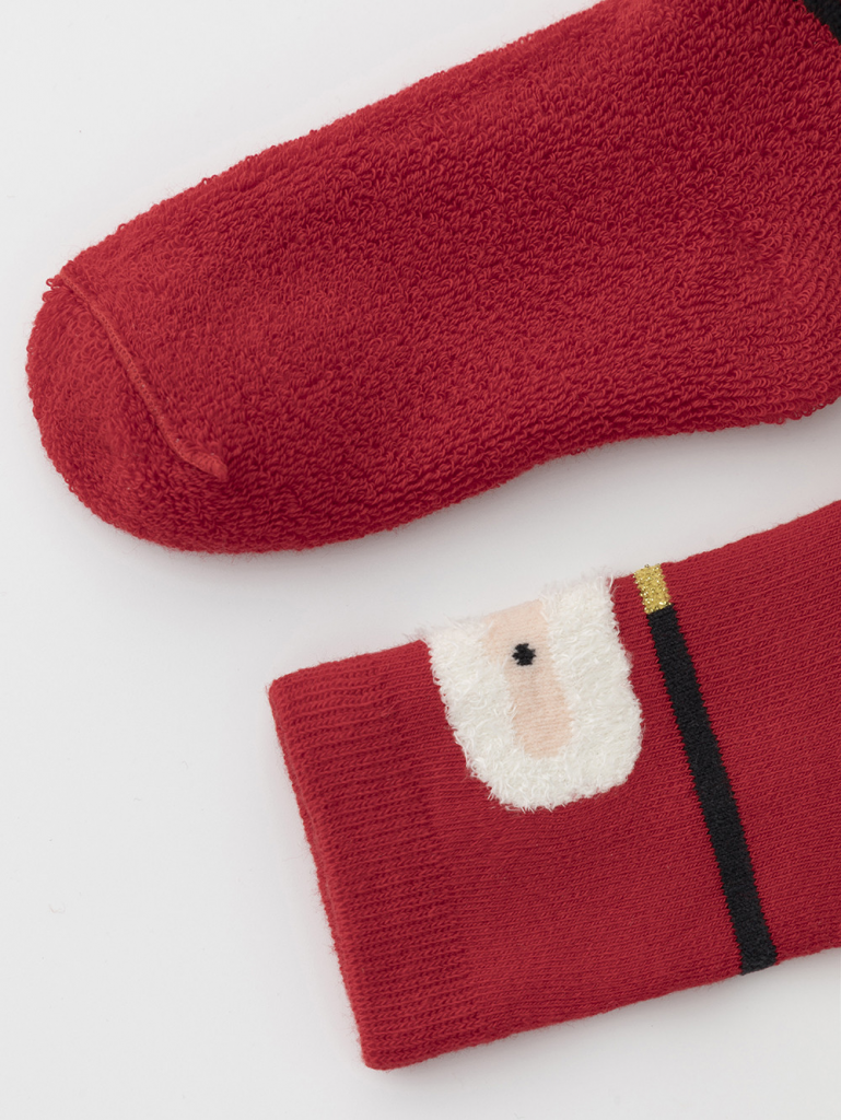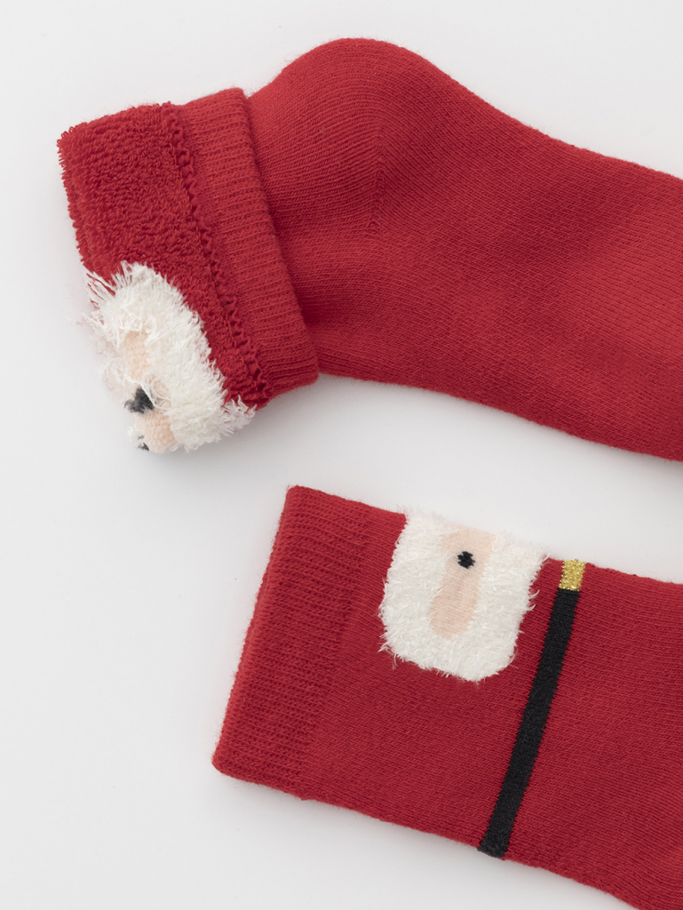 Тёплые махровые носки с формованной пяткой и эластичной резинкой по краю. Украшены рисунком. Отлично подойдут для создания праздничных образов или как дополнение к подарку на Новый год и Рождество. Изделие сохраняет форму и стойкий цвет после многочисленных стирок.