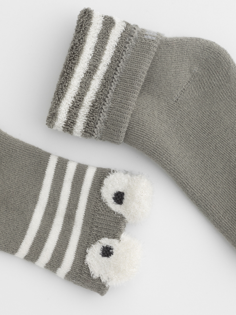 Носки махровые с формованной пяткой и эластичной резинкой по краю.Украшены рисунком с объёмными элементами. Изделие сохраняет форму и стойкий цвет после многочисленных стирок.