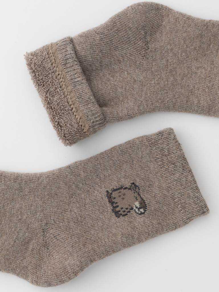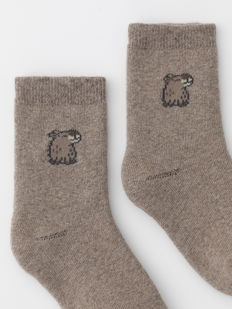 Носки махровые с формованной пяткой и эластичной резинкой по краю. Украшены рисунком. Изделие сохраняет форму и стойкий цвет после многочисленных стирок.